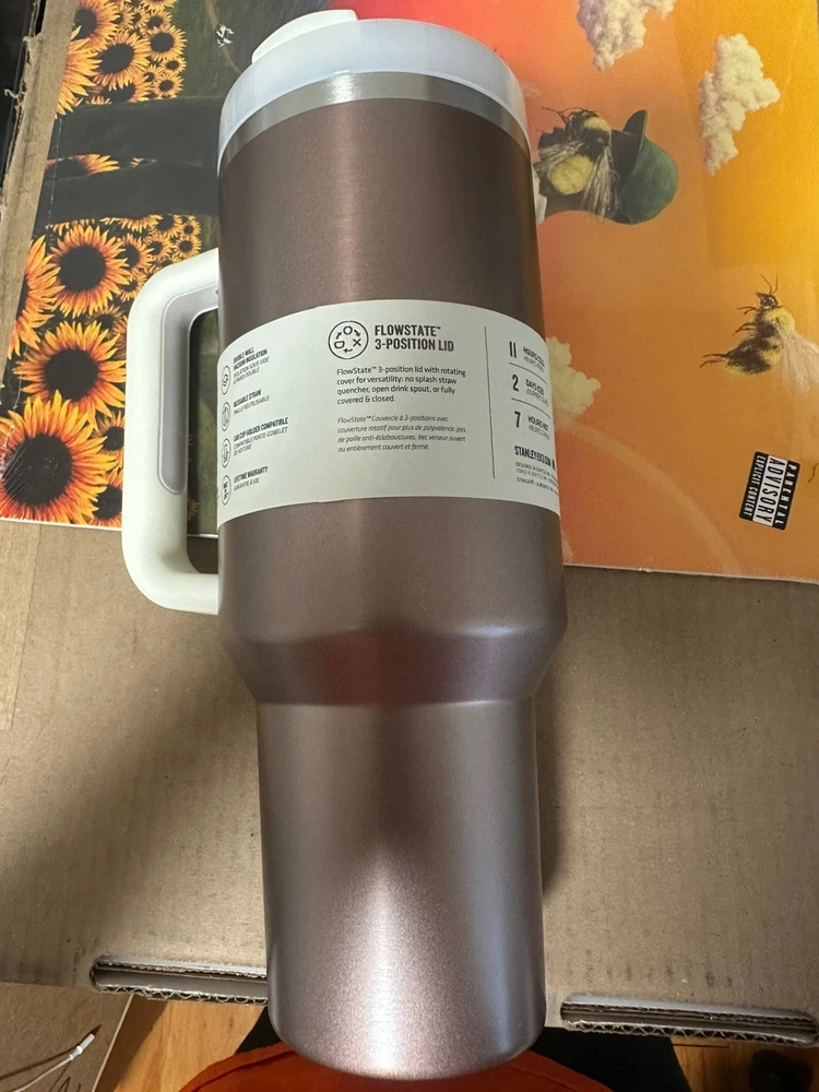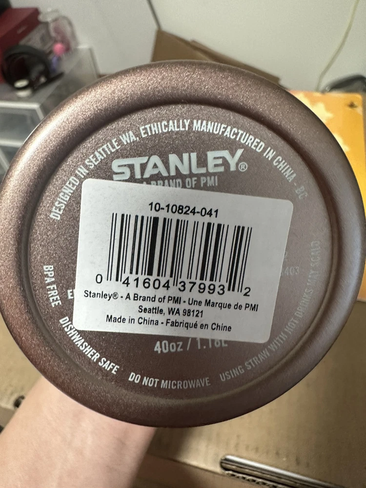 This is a Stanley 40oz Quencher H2.0 Tumbler in Rose Quartz Glow. It is a solid color tumbler made of stainless steel, suitable for hot or cold beverages. The tumbler comes with a drink-through lid and a straw, and it is insulated to keep drinks at the desired temperature. The model is designed for teens, boys, girls, and adults, featuring a pink color theme for a fun and stylish look.