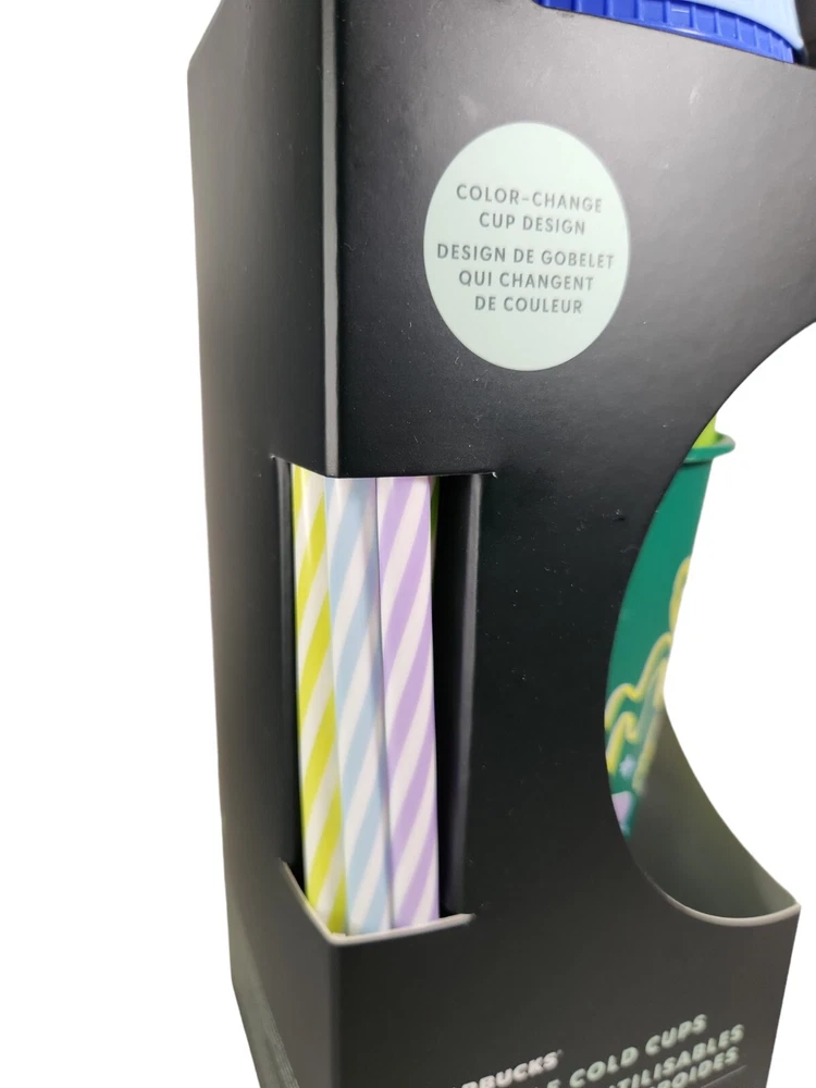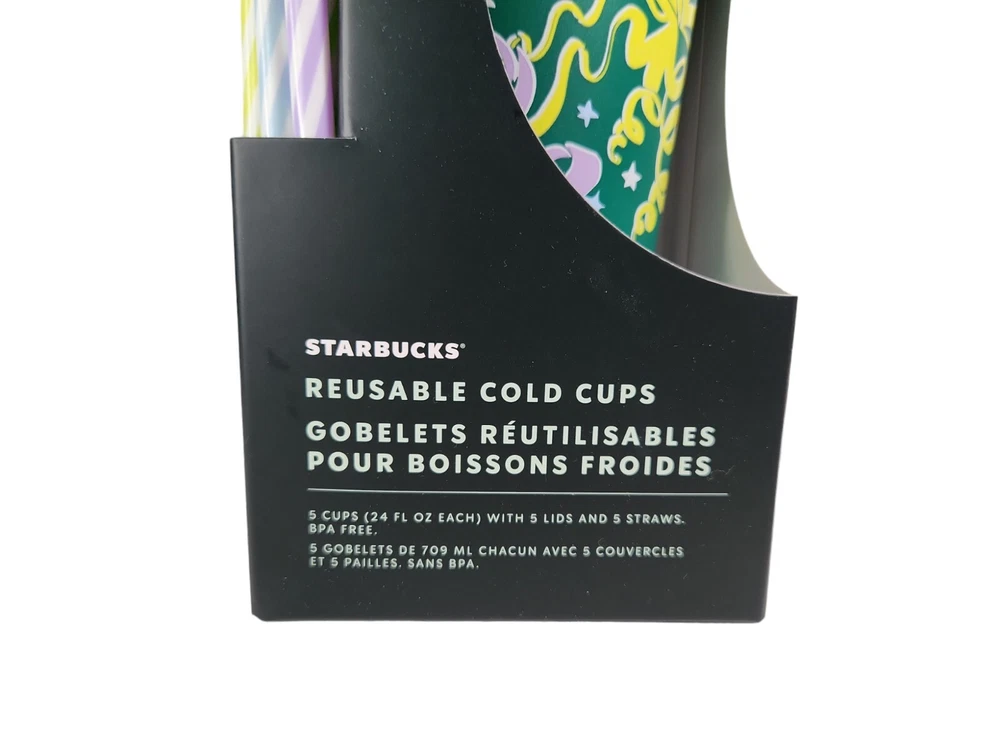 This pack of five Starbucks Holiday Reusable Cold Cups is perfect for any coffee or tea lover. The cups feature a color-changing design and come with lids and straws, making them convenient for on-the-go use. These cups are an original creation from Starbucks and were manufactured in 2023. The cups are part of a larger Starbucks collection and are perfect for adding to any coffee or tea-themed collection. They are also a great gift for anyone who loves Starbucks or coffee in general. Don't miss out on the chance to add these unique and festive cups to your collection!