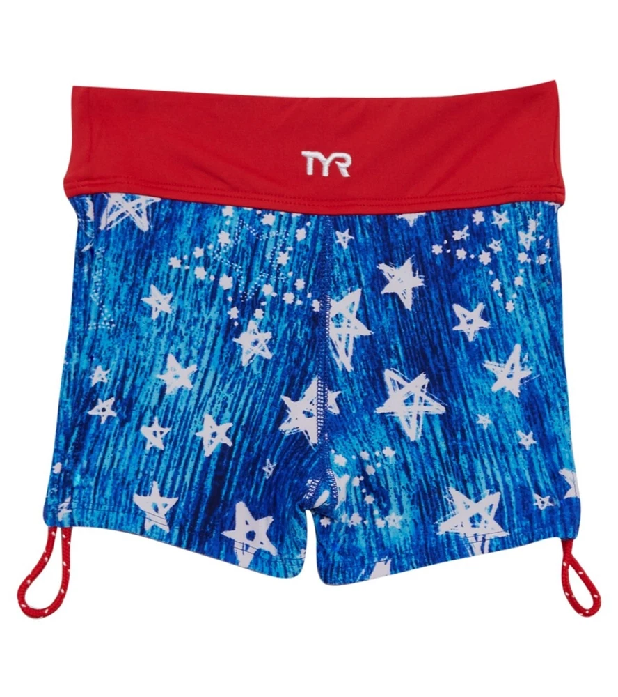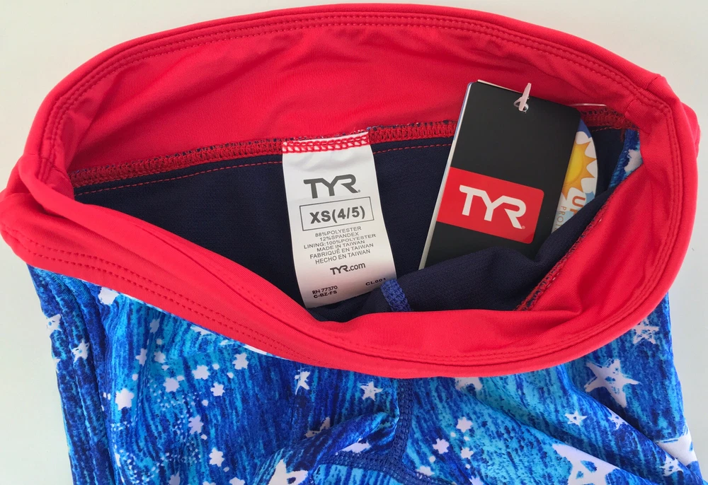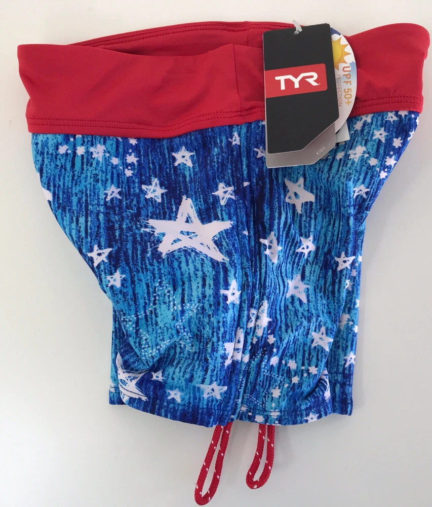 TYR Girls' Twinkle Della Boy Swim Shorts Please see matching top and/or other sizes in my store. New with tags Blue/White/Red Girl’s XS (4/5) (see pictures for detail measurements) Athletic fit boy shorts Durafast Lite® fabric offers 200+ hours of performance UPF 50+ provides sun damage protection 360 degree range of motion Power mesh control Fabric: 88% polyester/12% spandex