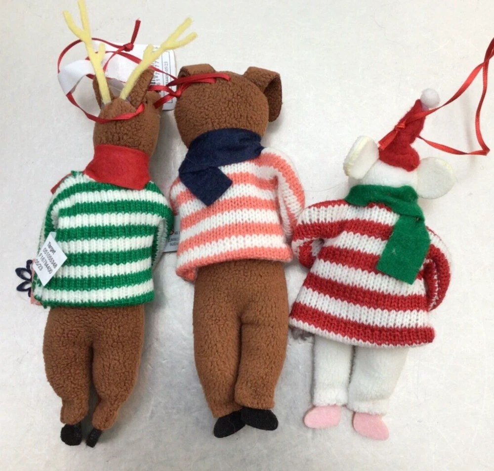 Available for purchase are 3 animal ornaments, reindeer, dog, and mouse with striped knit sweaters. The ornaments from Target Wondershop are new with original tags and in excellent condition. Please see pictures. Ornaments are from a smoke free home. Payment is required within 3 days. Thank you!