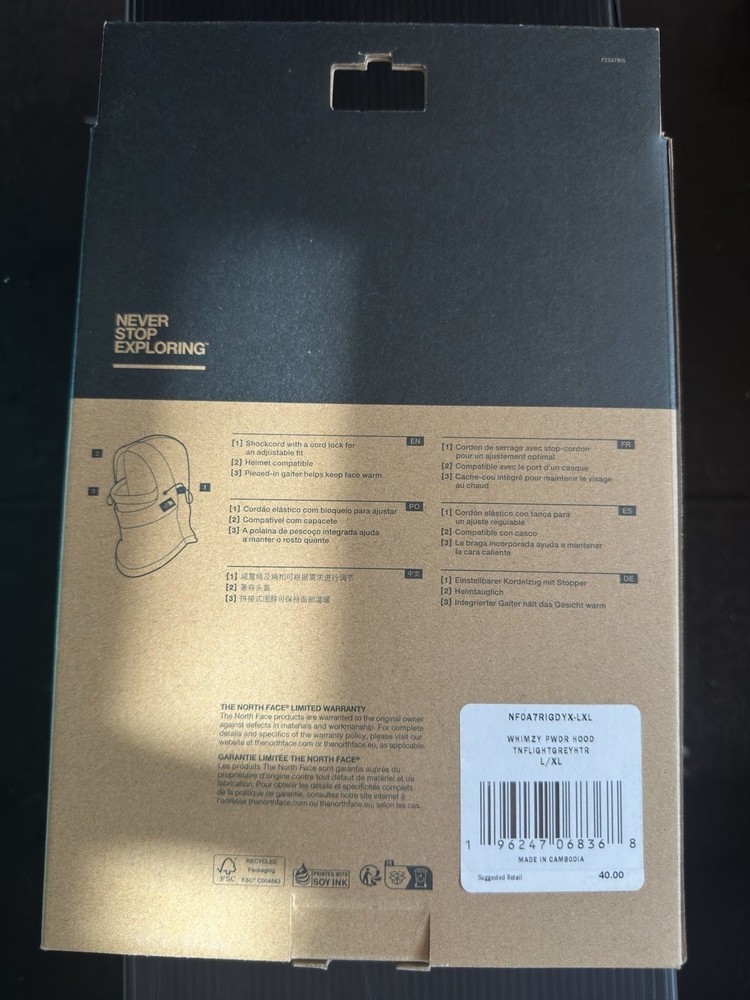 This North Face Whimzy Powder Hood is a winter essential—super soft, warm, and perfect for skiing or just staying cozy. The grey color goes with everything, and the L/XL size fits comfortably. Love that it’s authentic with tags, great quality as expected from The North Face. A must-have for cold-weather adventures!