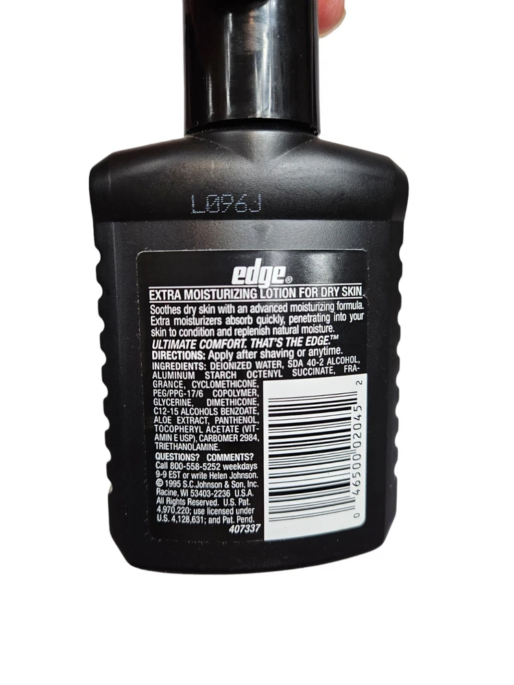 NWT Vintage Edge Fresh Scent Extra Moisturizing After Shave Lotion 3 fl oz New NWT Vintage Edge Fresh Scent Extra Moisturizing After Shave Lotion 3 fl oz Vintage 1995 Edge Fresh Scent Extra Moisturizing After Shave Lotion with Light Alcohol Soothes dry skin with an advanced moisturizing formula. Extra moisture absorbs quickly, penetrating into your skin to condition and replenish natural moisture. This item is new and unused.