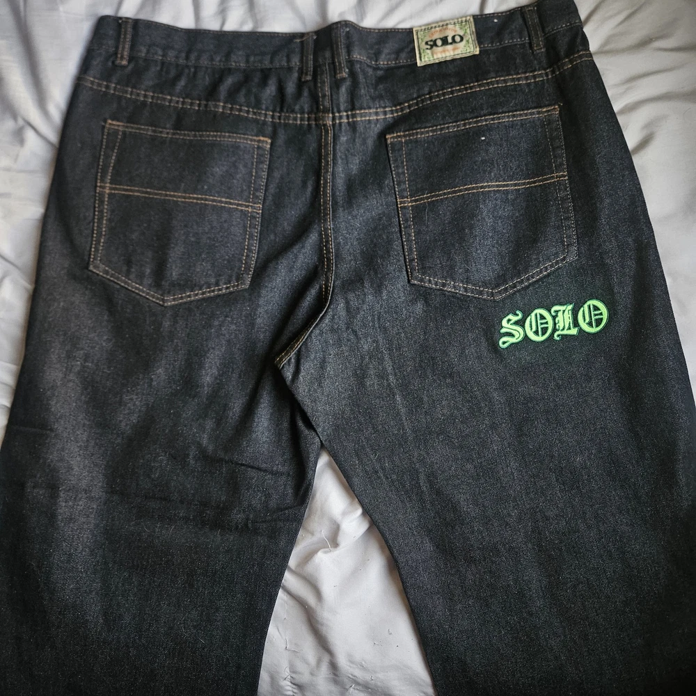 NWOT Solo Semore Baggy Embroidered Jeans FLAWS (Minor rip by pocket was there when I received it) Waist 42" Leg opening 12.5" Inseam 31" Outseam 43"