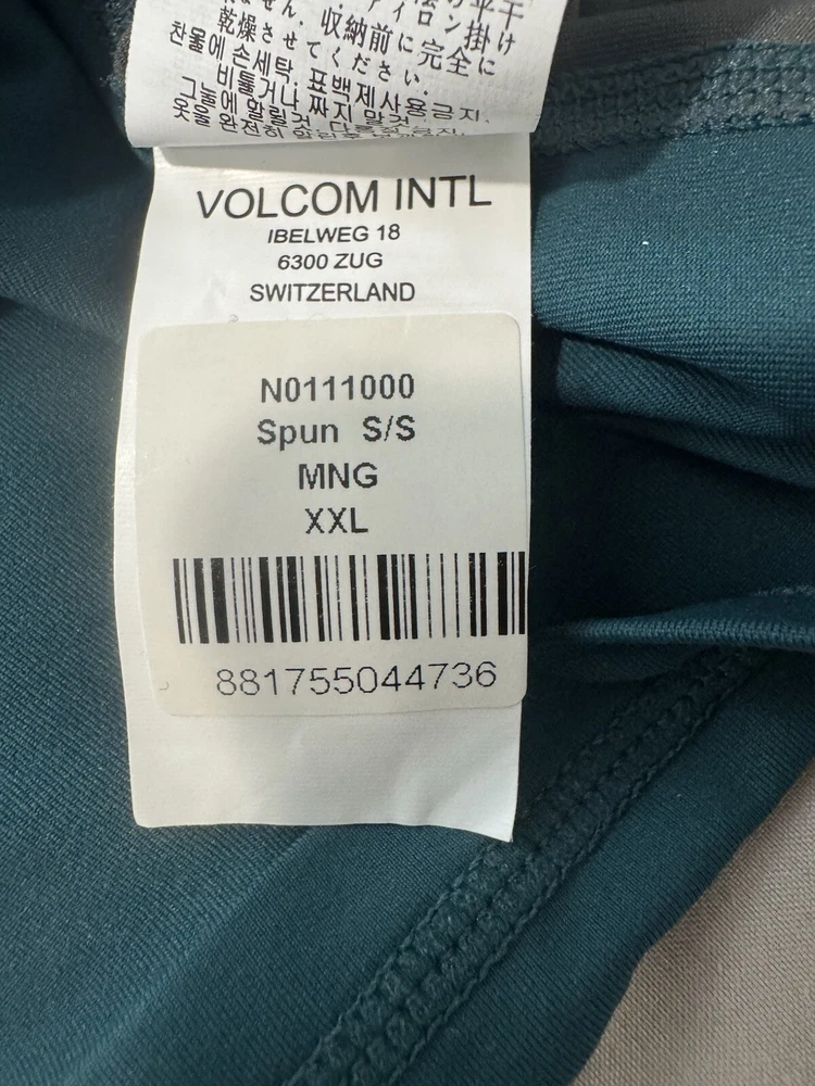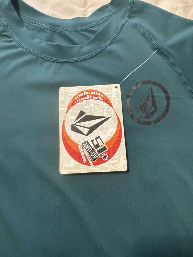 Brand New With Tags Volcom light weight rash guard swim shirt Tag Size XXL Modtech anti UV technology 51+ ultraviolet protection Green/Black/Grayvolor scheme Please see all photos for details!