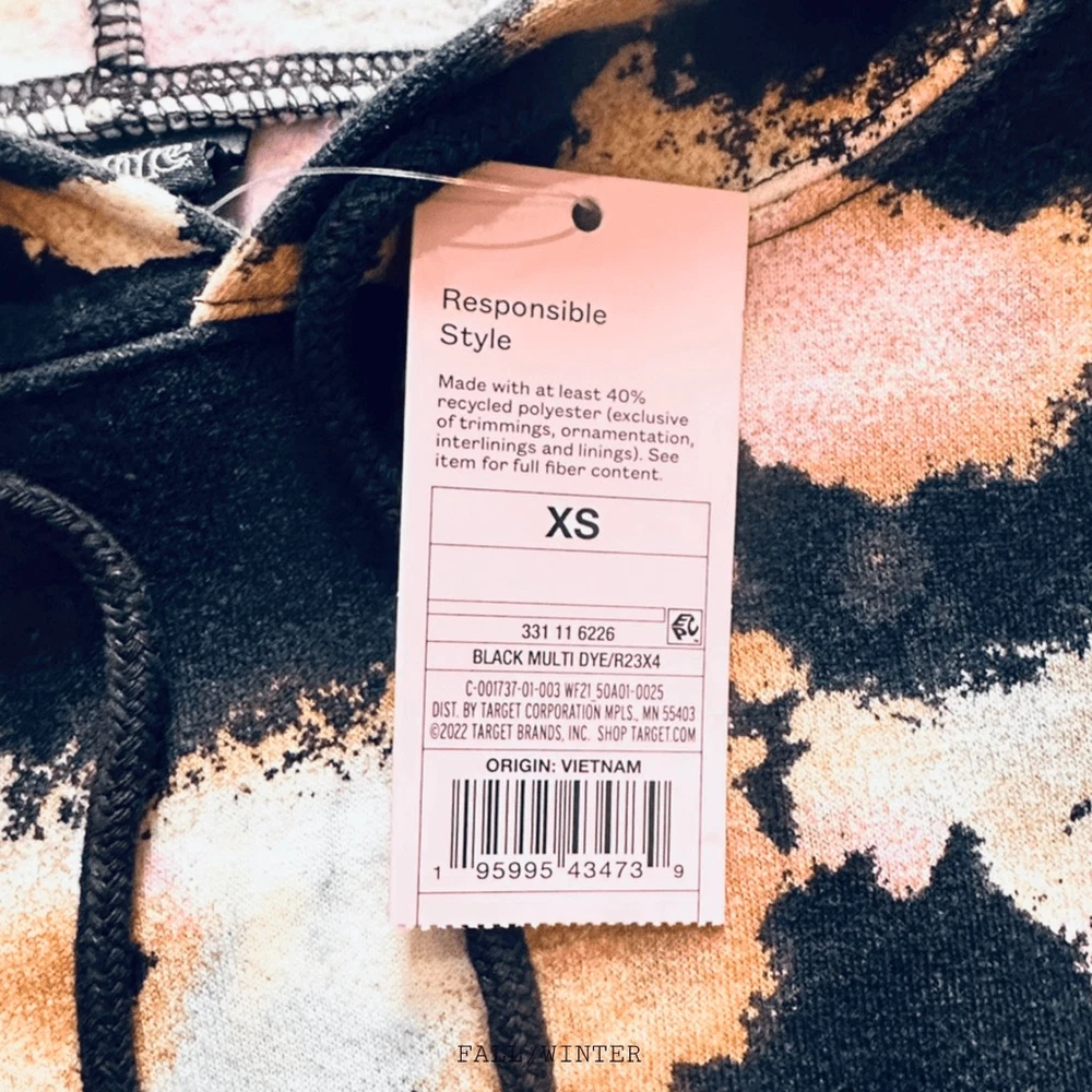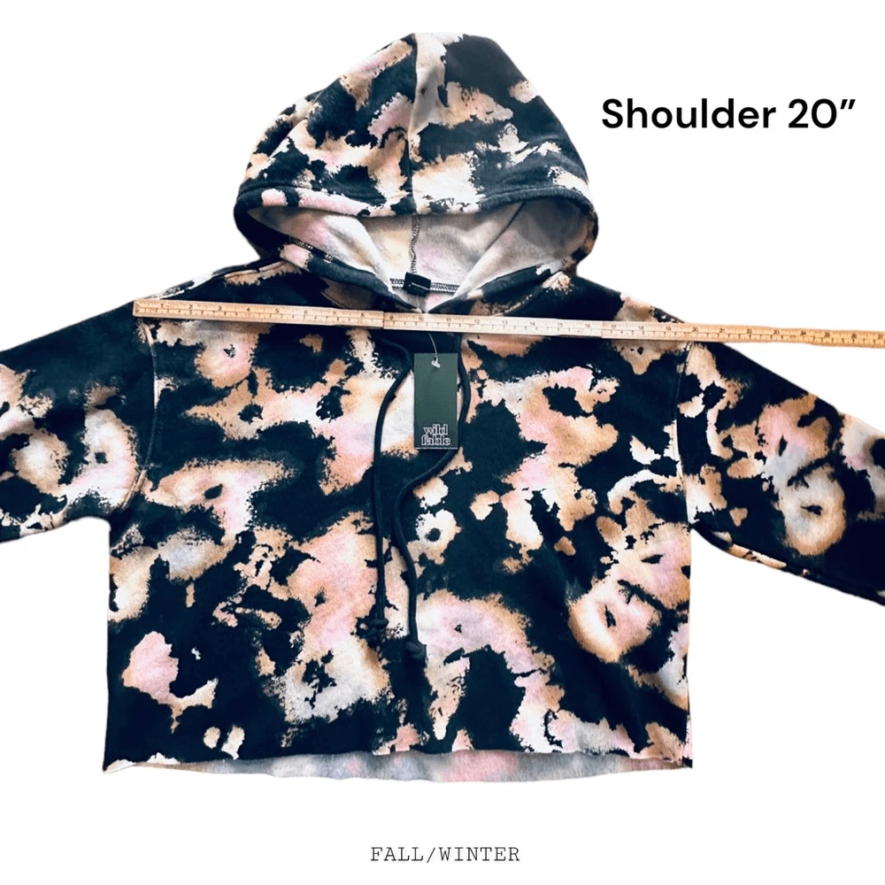 Pullover sweatshirt from Wild Fable in black tie-dye print and a cropped length with raw-edge hemline Midweight cotton-blend fabric keeps you comfy throughout the day. Long sleeves with ribbed cuffs offer stay-put comfort, While the drawstring hood provides extra warmth with a custom fit. Dropped shoulders complete the look with laidback vibes FIRM PRICE‼️ • 60% Cotton, 40% Recycled Polyester • Please review the size and pictures closely before purchasing. • NO RETURNS Bundle and Save: 15 % off for two items or 25% for three things or more in a bundle; REMEMBER TO EXCLUDE $10 or LESS, FIRM PRICE, AND FINAL SALES‼️ All measurements are laid flat and approximate; please see the pictures! ***Item: 0378 All items are loaded with clear, detailed pictures, pre-checked, firmly well packed, bagged or covered with foam/bubble wrap, and sealed with extra taping. Images and recorded support items with a video before packaging and after for your security protection and mine! TAGS: 00’s, 70s, 80s, 90s, a-line, adjustable, accent, alligator, ankle, asos, athleisure, autumn, aztec, babydoll, band, beach, bedazzled, beige, belt, big & tall, biker, birthday, black, blue, boat, bohemian, boho, bold, booties, boots, boutique, bow, bow tie, boy, bralette, bramy, bucket-style, burgundy, butterfly, camouflage, cardigan, casual, charming, cheetah, chemise, chic, chino, christmas, chunky, classic, classy, clogs, closure, cocktail, college, color, color-block, comfort, comfortable, compartment, concert, contemporary, cosplay, costume, cotton, country, cowboy, cowgirl, cowlneck, crazy, cream, crew neck, criss-cross, crocodile, crop, crystal, cuffs, cushion, cut & sow, date, designed, designer, dinner, distressed, doctors, door, drawcord, drawstring, dress, dressy, duck, durable, dye, easy, eclectic, edges, edgy, elegant, elevated, emblems, emo, essential, ethnic, evening, event, eye-catching, fabric, fade, fading, fall, fashion, fashionista, faux, festive, festival, fitness, flame, flame resistant, fleece, flesh, flowers, free people, funny, fur, gem, geometric, gift, girl, girls, girly, glam, traffic, graffiti, golf, goth, gothic, graphic, green, grunge, gypsy, handmade, hand pockets, handsome, haute, hawaii, couture, hawt, heart, heritage, heel, high heels, high-quality, high waist, hiking, Hip-Hop, hippie, hobo, holiday, hoodie, hook, hook and eye, hot, humor, ice, Inner lined, insole, insulated, intimate, isotoner, jeans, jersey, khaki, Kids, knit, lace, lake, layer, leather, leopard, light, lightweight, linen, lingerie, lining, loft, logo, L.O.L surprise, long, love, luxurious, luxury, magenta, man, man's, maroon, masonry, maxi, medical, memory foam, men, mesh, midi, military, mini, minimalist, mock neck, moccasins, mod, modern, moto, multilayer, music, must-have, mustard, mystical, natural, nature, neutral, new, NFL, office, officewear, one-piece, ortholite, out, outdoor, outfit, outfit set, outsole, oversized, padded, pajamas, pajamas set, pants, parties, party, pattern, picture, pieces, PINK, pinup, platform, plaid, pleated, plus-size, polished, polo, polyester, poncho, popular, premium preppy, present, pumps, punk, purple, purse, rain, rainbow, rare, rave, raw, red, relaxed, repellent, retro, ripped, rock, romantic, round toe, rubber, running, sandals, screen printed, scrubs, seductive, sexy, she'd, shedding, sheer, sherpa, shiny, shirt, shoe, shorts, side entry, side slit, silk, silver, simple, skate, skateboard, skateboarder, skater, skimmer, skirt, skull, sleek, sleep, sleepwear, sleeve, slippers, slouchy, sneakers, snow socks, soft, sophisticated, sparked, sparkly, special, sports, sportswear, spring, sporty, standard, stitched, stiletto, strap, strappy, stretch, stretchy, stripes, style, stylish, suede, summer, superhero, sweat, sweater, sweatpants, sweatshirt, sweatsuit, swim, swimwear, swirling, tatailored, tan, teddy, tennis, terry, texture, thermolite, thumb, tie, tie & die, tiger, tomboy, top, track pants, traditional, travel, trefoil, trending, trendy, tropical, tunic, turtleneck, tweed, two-piece, unique, unisex, utility, vacation, velour, velvet, versatile, vibes, vibrant, Victoria Secret, vintage, Virgin, VS, water repellent, waistband, wardrobe, warm, waterproof, western, white, wide, winter, woman, women, wool, workout, woven, wrap, Y2K, yacht, yoga, zebra, zipper, zippered,