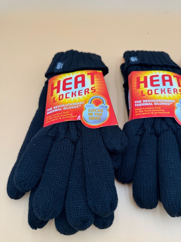 The NWT Women's Heat Lockers Thermal Lined Black Gloves in size L/XL are perfect for keeping hands warm during the winter season. Made with 100% acrylic material and lined with polyester, these gloves provide both comfort and insulation. The solid black color and logo accents add a stylish touch, making them suitable for both activewear and casual occasions. Machine washable and designed with a wrist length style, these gloves are a practical and fashionable choice for cold weather.