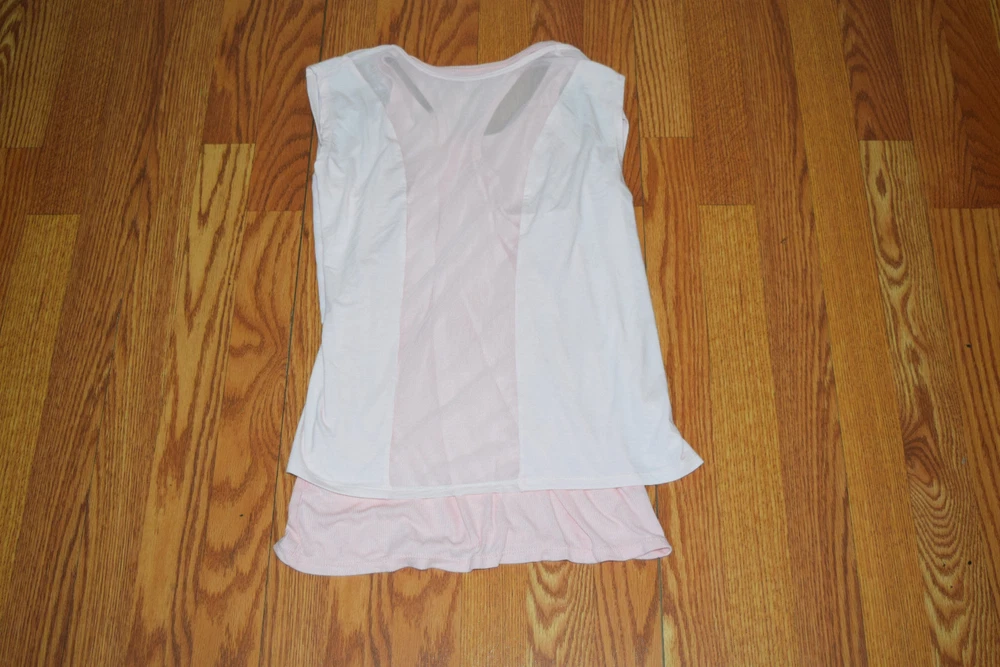 This women's tank top is NEW without tags! ***A stock photo from our inventory has been used to help save time. You will receive the item described in the size listed below!*** TANGERINE Made by Tangerine, this tank top is a great find! It is a layered active tank. It is a blush pink color. The top layer does have sheer capped sleeves. The back is sheer and the bottom layer is a ribbed tank. It has a rounded neckline for a great look and ultimate comfort while exercising or just lounging around the house!! The fabric wicks moisture away from the skin to keep you dry!! It is lightweight with added stretch for a great fit! The front is made of 67% Polyester, 28% Rayon, and 5% Spandex! Size: Small Underarm to Underarm Measurement on bottom layer: 16 inches lying flat Length: 28 inches (bottom layer) I do my very best to give accurate measurements. If you have any questions on the measurements, or anything else, please ask! Shipping to the United States is FREE! This includes FREE delivery confirmation in the United States only! If you are an International Bidder, package tracking is unavailable! Check out my other items because I will always combine shipping! Be sure to add me to your favorites list ! Please submit payment in 7 days of the end of this auction. If payment hasn't been received and contact has not been made in those 7 days, eBay will be notified and negative feedback left. If you have a question, please ask prior to bidding because I am happy to answer questions you have! If you are an International bidder, any and all customs charges are the sole responsibility of the buyer and the seller assumes this is understood upon purchase. Thank you and have a great day! Bin 37