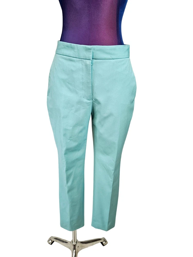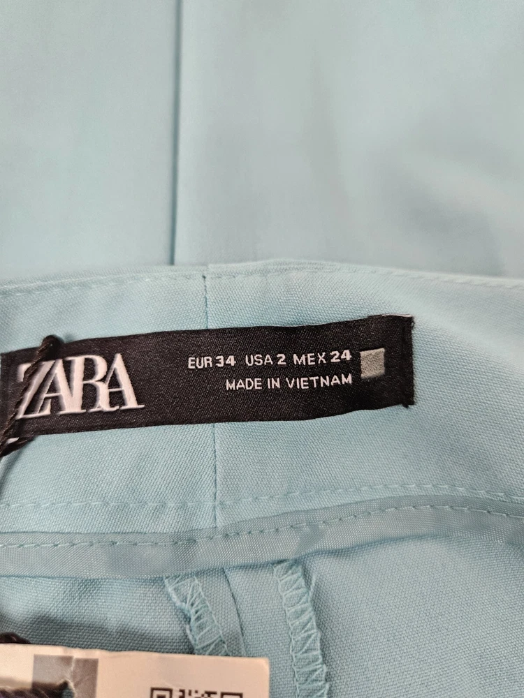NWT Zara Tiffany Blue Ankle Dress Pants Size 2 Women's L60 New with tags Zara Tiffany Blue Ankle Dress Pants Size 2 Women's. Features beautiful Tiffany blue rayon fabric, ankle pants with side slit, hook loop and zipper closure, 2 slip pockets, 2 back pockets, dress pants. Measurements laying flat waist 12.5" front rise 9.5" inseam 26" hips 17.5" Fabric polyester, viscose, spandex This garment is new with tags, small spot from shipping on right thigh. Should come out when laundered.