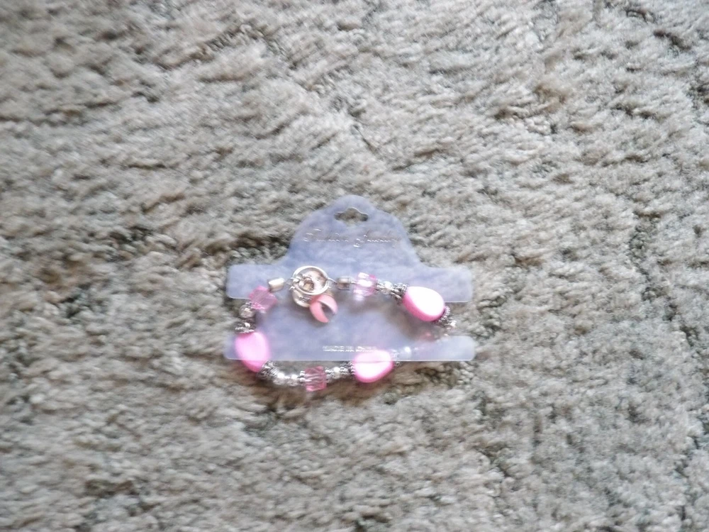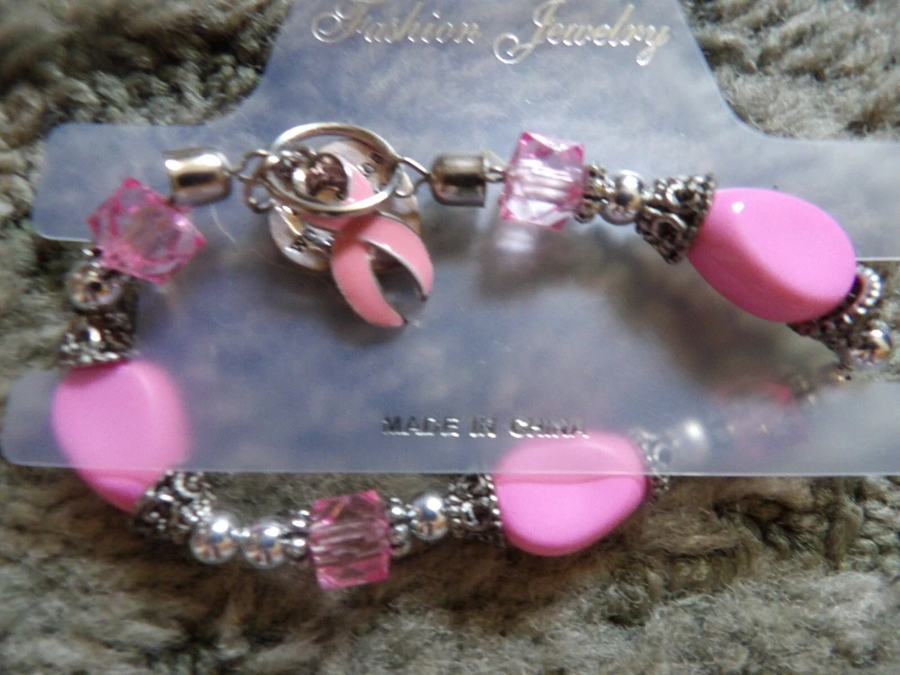 Show your support for breast cancer awareness with this beautiful charm bracelet. Made of high-quality metal, this bracelet features a charming pink design that is perfect for any occasion. Whether you are dressing up for a night out or simply want to add a touch of elegance to your everyday look, this bracelet is the perfect accessory. Featuring a stunning charm design and a comfortable fit, this bracelet is ideal for anyone who wants to make a statement and support a great cause. So why wait? Add this beautiful bracelet to your collection today and show your support for breast cancer awareness!