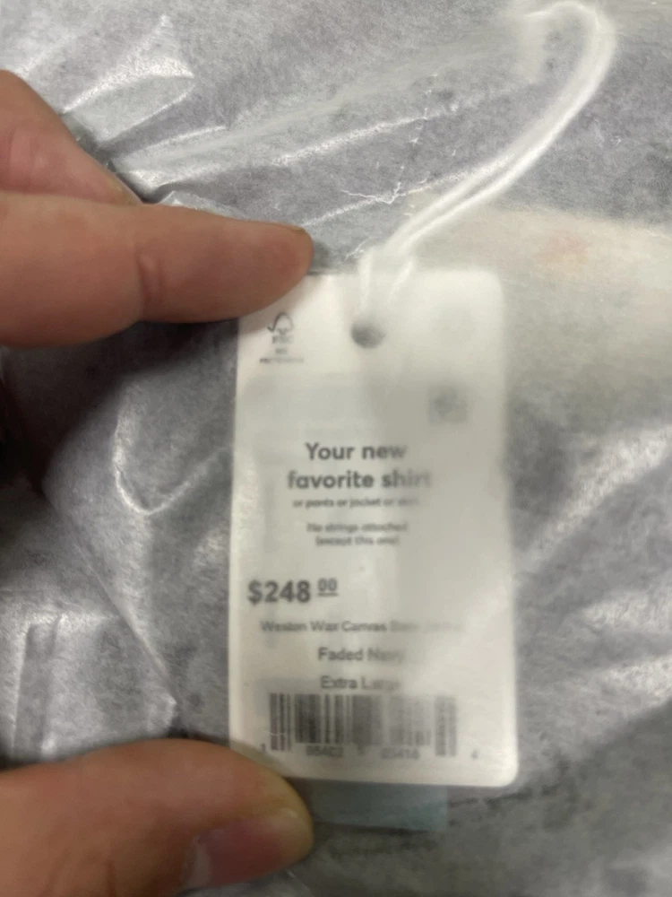 Brand new with tag 100% authentic Men's size XL Color Faded Navy All sales are final, please make sure it is the right size before ordering. Fast shipping via UPS Ground All the workwear style, but it feels soft and broken from the first day you wear it. And no, you don’t have to actually do any barn work in it. Put away that scratchy, stiff work coat (you know the one), and get the same style with way more comfort. We made this barn jacket to feel like it's been broken in for 30 years, but still look brand new. It's flannel lined in the body for warmth, and the soft, wax finish is even water resistant. Talk about being ready for anything…Made with an ultra broken-in waxed canvas that feels soft, and not like your coat got covered in a bar of soap. There's no wax on the fuzzy flannel lining or inside the sleeves though…because why would we do that? 100% cotton fabric Nylon lined sleeves Classic fit Water resistant wax finish Flannel-lined Spot wash cold, hang to dry Made responsibly in China Raphael is 6' 2", wears a medium, and swears he's not related to the Renaissance artist.