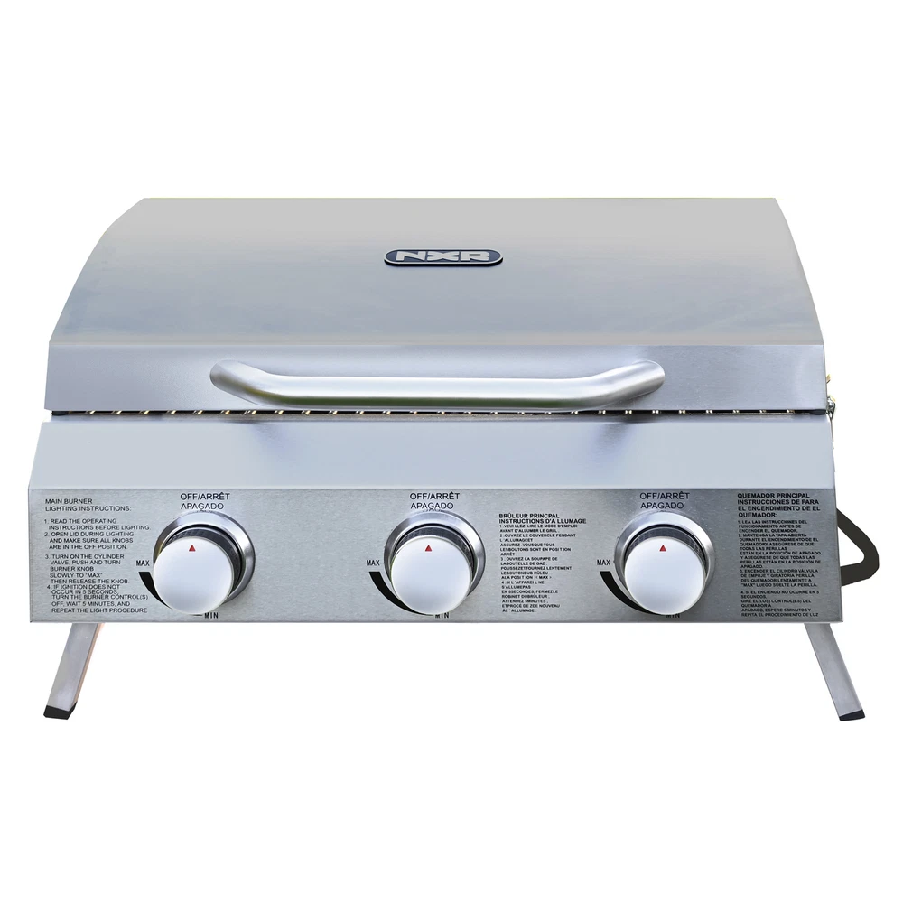 NXR 3-Burner Portable Gas Grill β Stainless Steel, 24,000 BTU, Tailgate & Camping π₯ Take Grilling on the Go! π₯ The NXR 3-Burner Portable Gas Grill is your perfect camping, tailgating, or road trip companion! Built with durable stainless steel , this high-performance propane grill delivers 24,000 BTU across three burners to handle all your cooking needs. β¨ Key Features: β 3 Stainless Steel Burners β 24,000 total BTU for even heat distribution. β Portable & Compact β Perfect for camping, tailgating, picnics, and backyard grilling. β 312 Square Inch Cooking Surface β Plenty of space to cook multiple items at once. β Push-and-Turn Ignition β Quick and safe startup. β 304 Stainless Steel Construction β Lid, firebox, cooking grid, and flame tamers for durability. β CSA Approved Regulator & Hose β Ensures safety and efficiency. β ABS Alloy Control Knobs β Easy flame adjustment. π Product Specifications: Brand: NXR Color: Stainless Steel Fuel Type: Propane Grill Style: Portable Total BTU: 24,000 Cooking Space: 312 sq. in. Ignition System: Push-and-Turn Dimensions (W x D x H): 25.1 in. x 18 in. x 14.8 in. Weight: 30.1 lbs. Model Number: 880-0034 π Condition: β Brand New β In Original Packaging π₯ Grill Anywhere, Anytime! Perfect for Outdoor Cooking Enthusiasts. π₯ π Fast Shipping & Secure Packaging! π