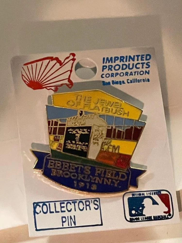 These pins include The Subway Series, Ebbetts field (home of the Brooklyn Dodgers); and Yankee Stadium The House That Ruth Built pin. These pins have never been off the original packageing/card.