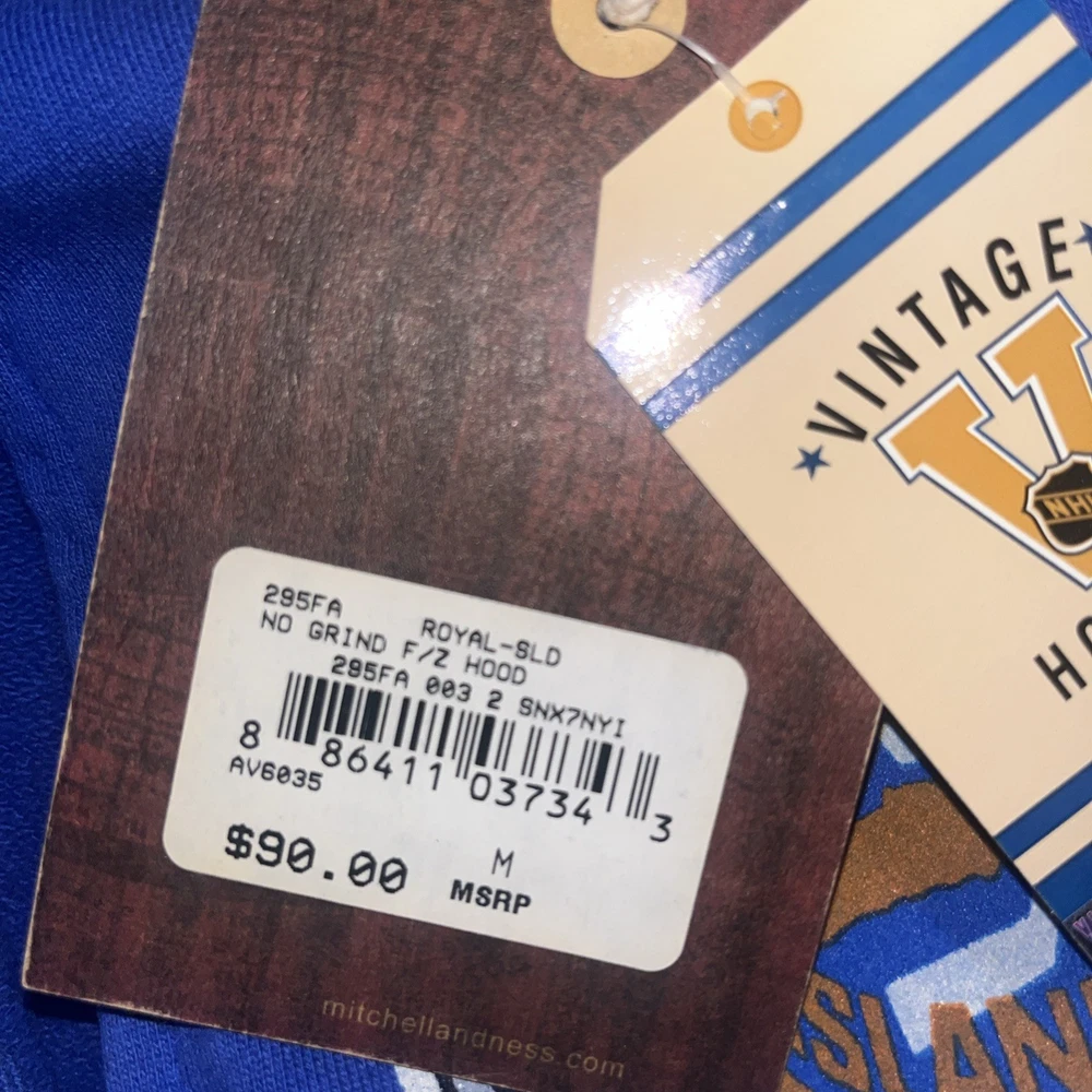The New York Islanders Hoodie Sweatshirt is a officially licensed NHL jersey by Mitchell & Ness. This zip up hoodie features the team's logo and colors, making it a perfect sport apparel for hockey fans. The unisex adult size M hoodie is made with high quality materials, perfect for showing support for the New York Islanders during hockey season. Shipping could be higher depending on amount purchased. You may request different sizes when purchasing more than one