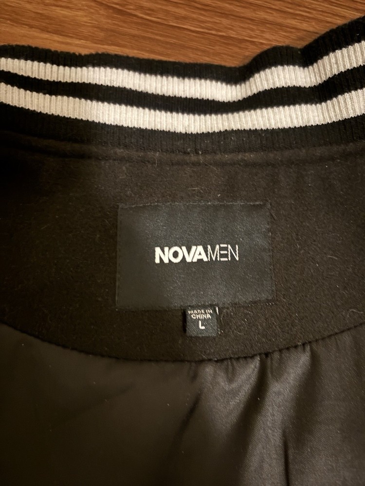 Size: L Theme: Classic, Sports, Retro Department: Men Features: Lightweight Insulation Material: Polyester Size Type: Regular Outer Shell Material: Polyester Color: Black Type: Jacket Model: Varsity Fabric Type: Polyester Lining Material: Polyester Style: Varsity Jacket Brand: Fashion Nova Pattern: Solid Accents: Button