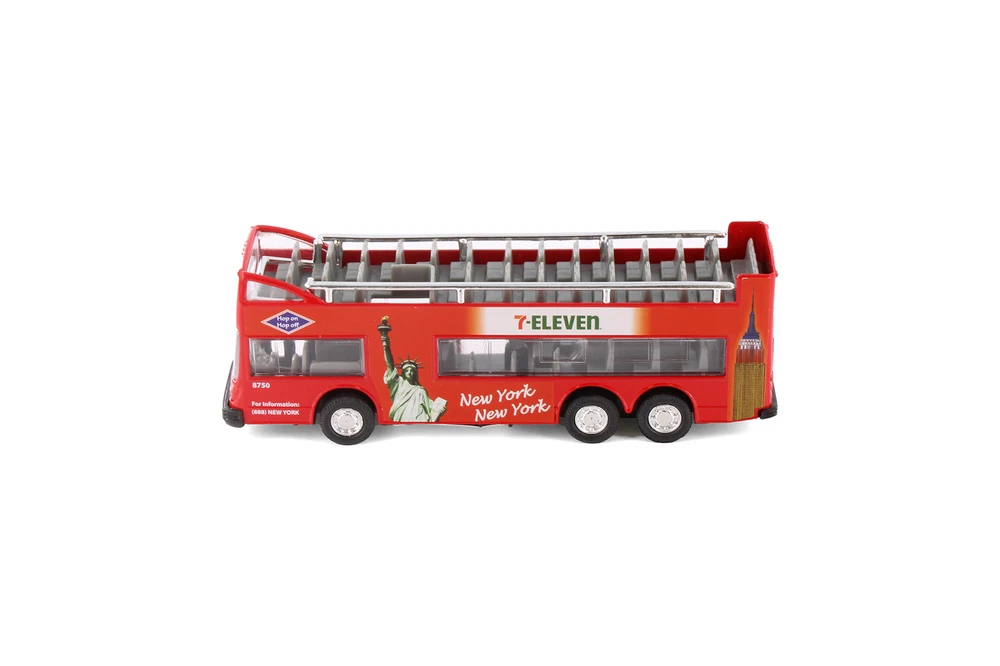NYC 7-ELEVEN SIGHTSEEING DOUBLE DECKER BUS OPEN TOP 6" DIECAST CAR 2168D11