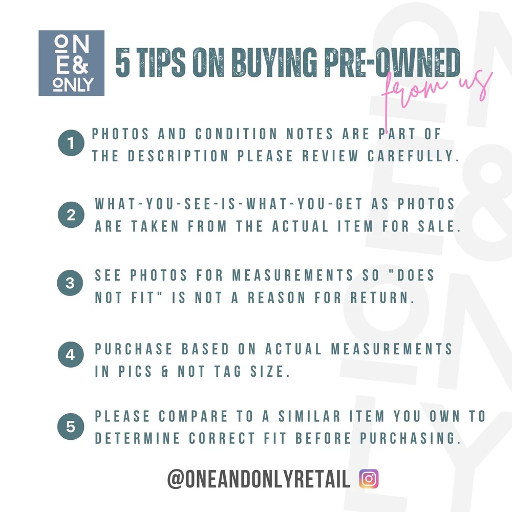 COPY LISTING TITLE HERE & Add RN# (if avail) & SKU DESCRIPTION: Excellent New Without Tags. Photos are of the actual item and are part of the description. FAST SHIPPING! 📦 1 Day Shipping Monday-Friday With Tracking InfoFo Follow us @oneandonlyretail 📦 1-Day Shipper 🌟 5-Star Seller 🚬 Super Clean & Smoke Free