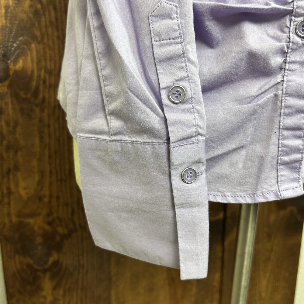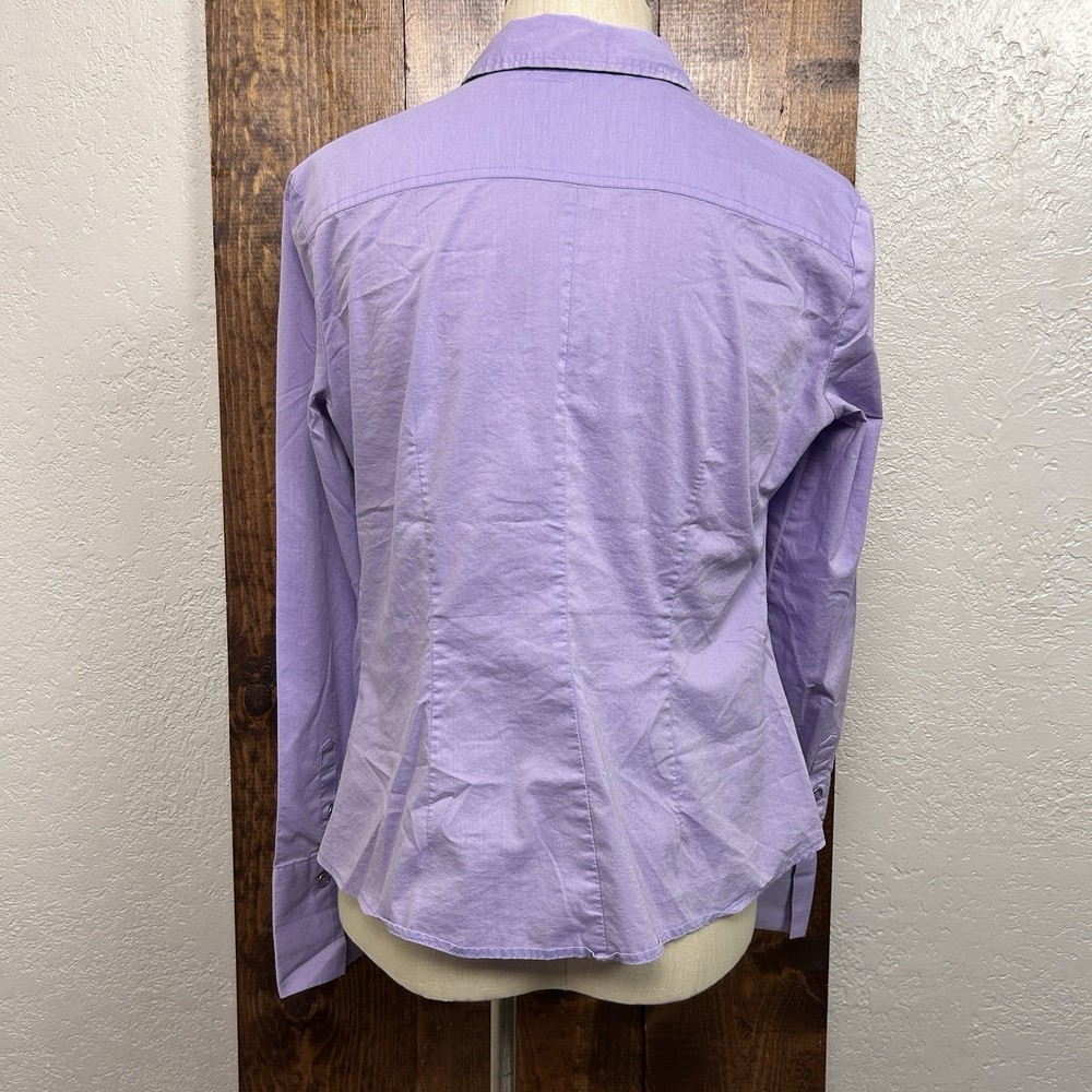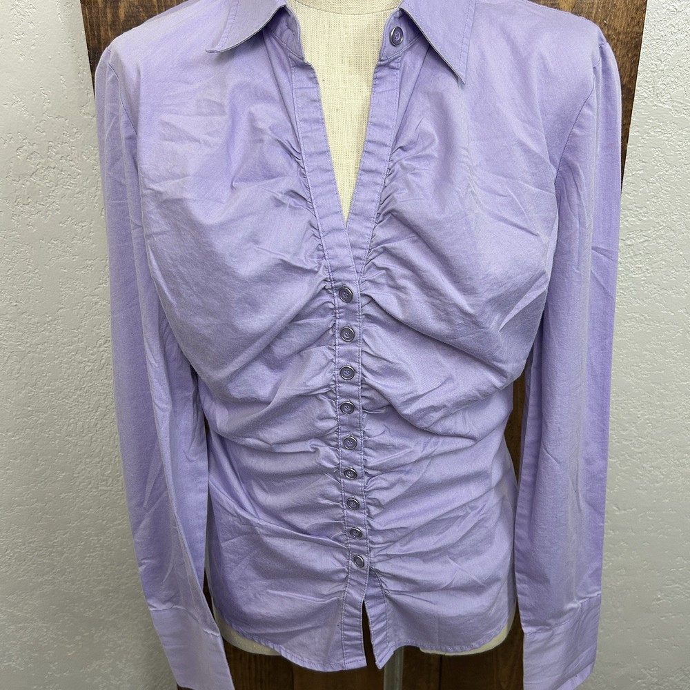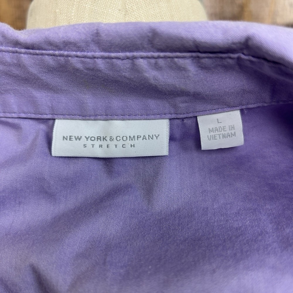 NY&Co Womens L Shirt Button Up Purple Office Siren Corpcore Y2K Sexy Secretary Width: 20.5” Length: 24.5” Used, vintage, or older items may show a few signs of wear or slight fading due to age. Anything visible (stains/holes/etc.) are a possibility, if not shown initially. Please review photos carefully. Item sold as is. No returns.