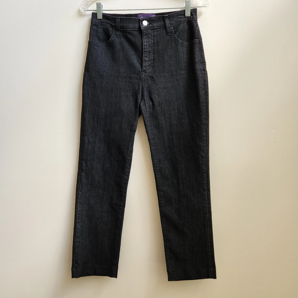 NYDJ Jeans Women's 4 Black Denim Lift Tuck Technology Straight Grunge Goth Retro - Pre-Owned - Has Minor Stretch on Front, See Photo #4. Otherwise in Good Pre-Owned Condition - Measurement – Approximate Waist across front - 13 3/4 in Rise - 10 1/4 in Inseam - 26 1/4 in Out Seam - 36 1/4 in Leg Opening – 6 3/4 in - All Seasons, Night Out, Date Night, Any Occasion, College, School, Everyday, Day Out, Shopping, Party, Stylish, Chic, Trendy, Casual, Modern and Simple - Returns acceptable within 30 days of purchase unworn, in original condition - Check out my E-bay Store. Lots of Choices Available. Reduced shipping for 2 or more items. Let me know before you pay so I can send you an invoice to discount the shipping