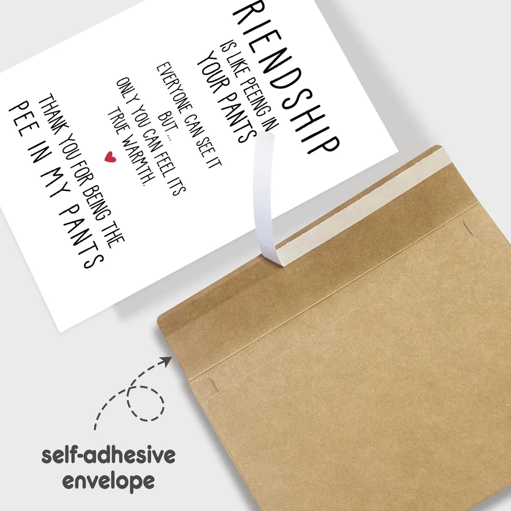 Naixiwen Best Friend Birthday Card for Women Men, Funny 153 Product Features Hilarious Design: This funny birthday card features a witty and playful message: "Friendship is like peeing in your pants. Everyone can see it, but only you can feel the warmth." A great combination of humor and heart to celebrate your bond with your bestie! Well Suited for Close Friends: Whether it's for your BFF, mate, or close partner, this best friend birthday card makes a fun and memorable birthday gift for your best friend, bro, ladybro, or childhood chum. Show them you appreciate the warmth of your friendship with a laugh. Humorous & Sarcastic Tone: A humorous and slightly inappropriate twist on the typical birthday greeting. The sarcastic banter and witty humor make it an ideal choice for those who love funny, naughty, and light-hearted birthday wishes. Quality Material: Printed on durable 300gsm cardstock, measures 8.1 * 5.3 inches, this birthday card for friend is designed to last. Its vibrant colors and sharp text will ensure your humorous message is delivered in style. Versatile Gift for Any Good Friend: Great for both men and women, whether it's for a bro, buddy, crony, or pal. Whether you share a long-standing friendship or a hilarious bond, this funny friendship card will make your bestie laugh out loud on their special day. Shipping: Shipping is complimentary within the lower 48 US States. We Do Not Ship to PO/APO Boxes, HI or Alaska We Do Not Ship Outside of the Continental US All items ship within 24-72 hours of Payment For large items that require Freight shipping a valid phone number is required to call and schedule your delivery Terms of Sale and Feedback: Feedback is extremely important to us and eBay If you are satisfied with our transaction, please take a moment to leave Positive Feedback. YOUR Satisfaction is our #1 Priority! If there are any issues, PLEASE contact us BEFORE leaving a neutral or negative rating so that we may resolve any concerns. We PROMISE we can make you happy if you give us a fair chance. Returns / Concerns: All items qualify for returns within 14 - 30 days of receipt. Buyer is responsible for return shipping on any item that is not damaged Please be sure this is an item you want before making your purchase. Customer Satisfaction is our TOP priority! All items are IN STOCK at time of listing. Inventory on eBay changes constantly and it is impossible to maintain a perfectly accurate count of all items. Please do not penalize us if we have to issue you a refund! Thank You For Your Business!
