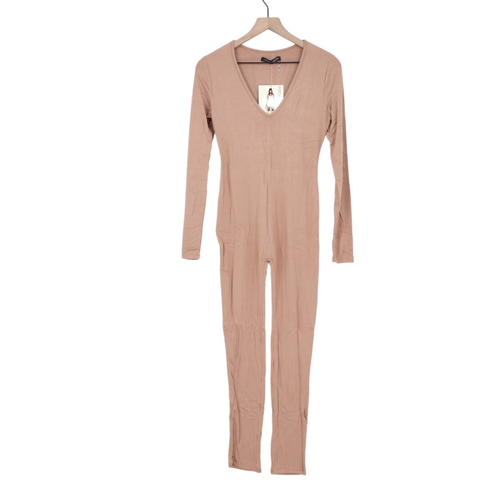 Naked Wardrobe Long Sleeve V-Neck Jumpsuit Tan Mauve Size M