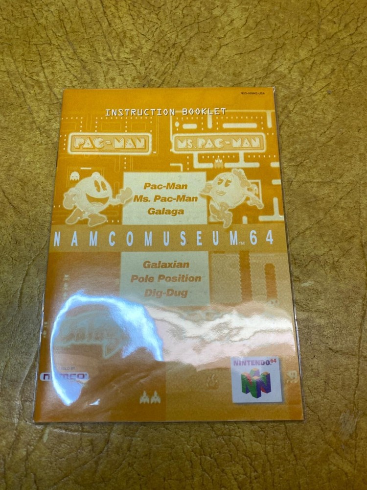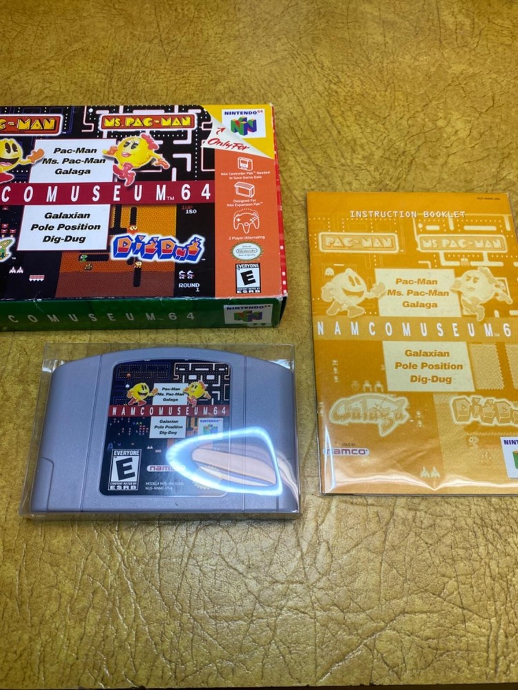 The product is "Namco Museum 64" for Nintendo 64, released in 1999. It is a complete and authentic edition of the game, tested for functionality. The game features classic games from the BANDAI NAMCO Museum Series, including titles like Pac-Man. It is a compilation genre game, suitable for family/kids, with multiplayer capabilities. The unit is NTSC-U/C region coded and manufactured in the United States. The package includes the game cartridge and manual, making it a collector's item for fans of retro gaming on the Nintendo 64 console. Includes: Item, Box, and Manual Condition: Normal wear Description: CIB, comes with a protective sleeve.