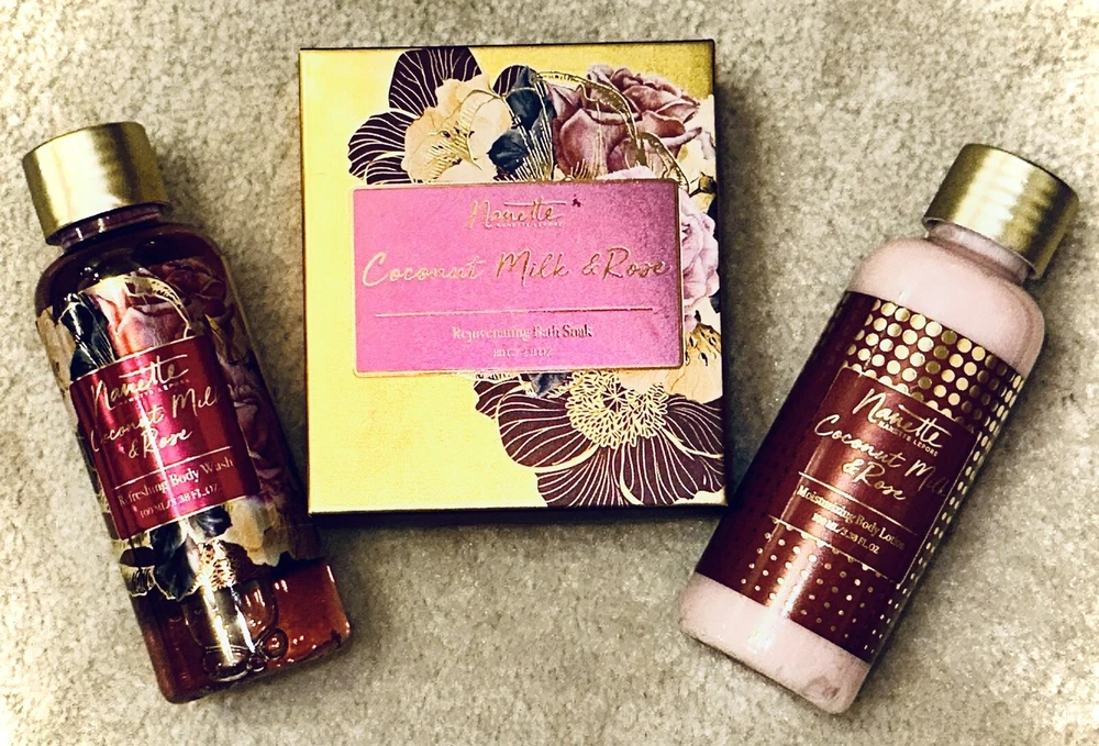 Nanette Lepore Bath Essentials 3 Piece Gift Set ❤️NIB❤️. Nanette Lepore Bath Essentials 3 Piece Gift Set ❤️NIB❤️ in Coconut Milk & Rose A new beauty ritual for your body. Its silky formula with shea butter and coconut oil moisturizes and softens your skin, while delicately perfuming it. Apply gently for skin that is lightly scented and hydrated for 24 hours. Let Coconut Milk & Rose soothe you. A real haven of peace. Part of the Natural Beauty body care collection inspired by nature for soft, radiant skin. The marriage of flavors and benefits. Sumptuous and highly effective formulas. Plant inspiration, day-to-day transformation. Type of fragrance: fruity floral 24 hour hydration Includes: • 1 Moisturizing Body Lotion (100mL) • 1 Refreshing Body Wash (100mL) • 1 Rejuvenating Bath Soak (2.8oz) NEW IN BOX