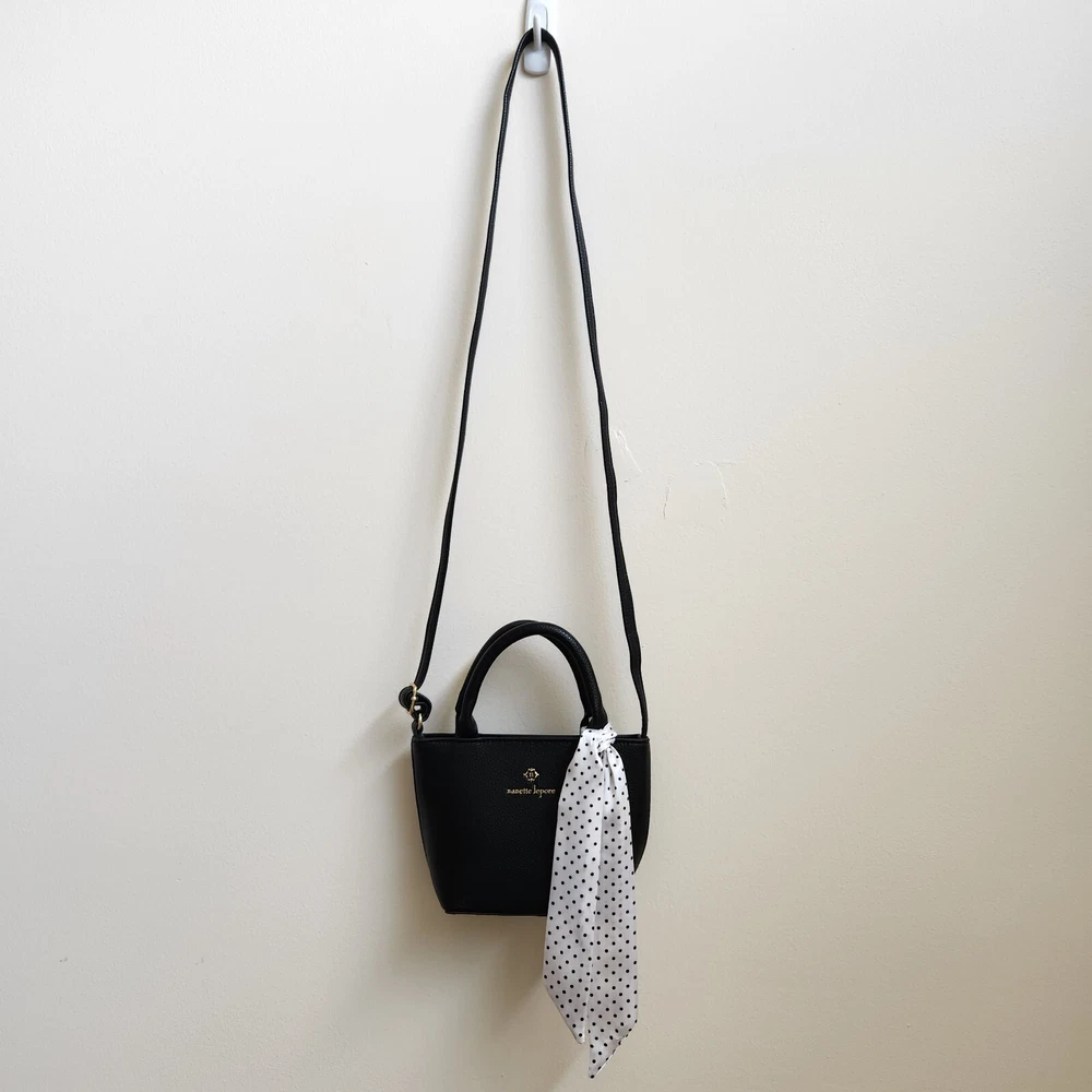 Nanette Lepore Black Vegan Leather Adjustable Crossbody Bag Mini Tote Scarf - Pre-Owned in Very Good Condition - Measurements in Photos - Returns acceptable within 30 days of purchase unworn, in original condition - Check out my E-bay Store. Lots of Choices Available. Reduced shipping for 2 or more items. Let me know before you pay so I can send you an invoice to discount the shipping