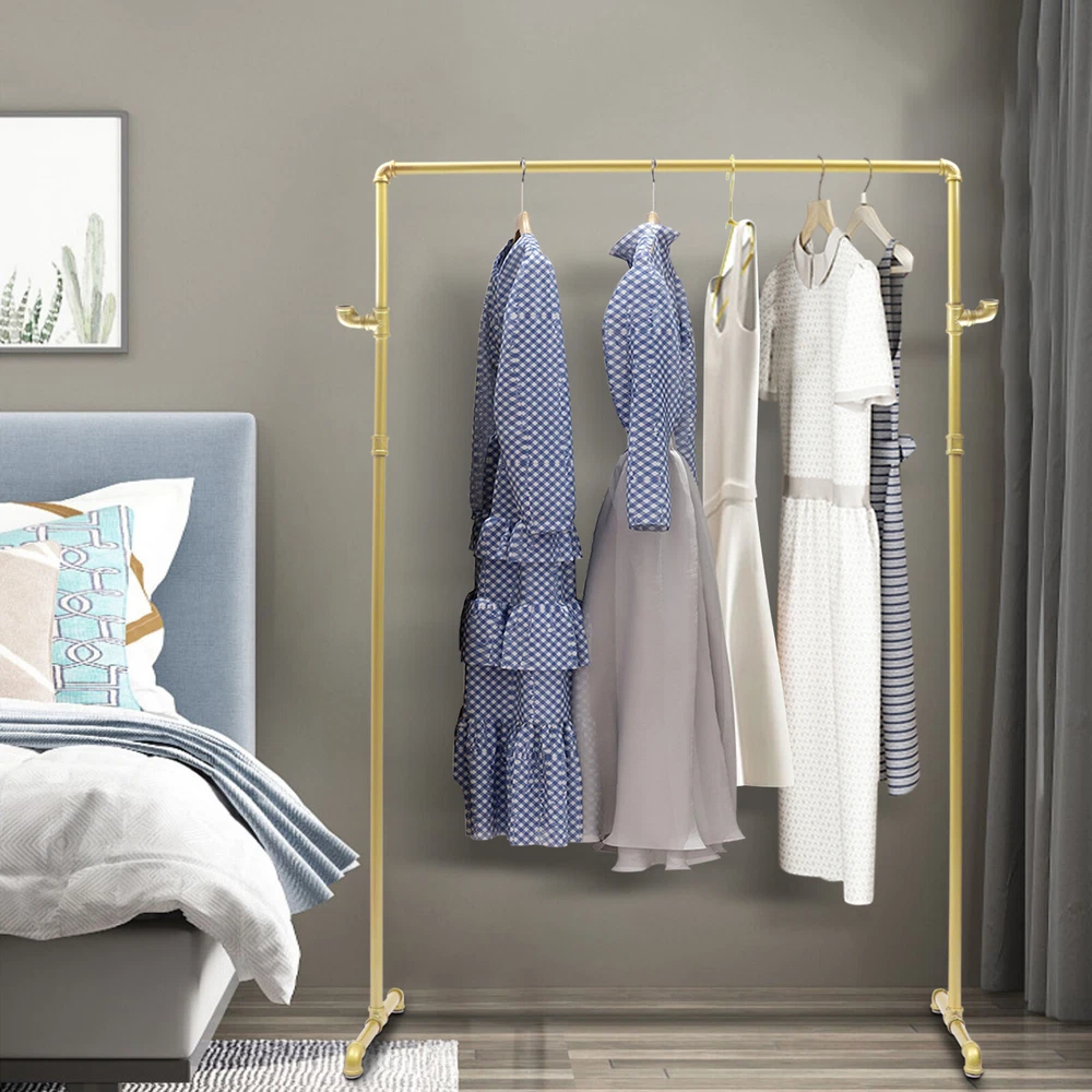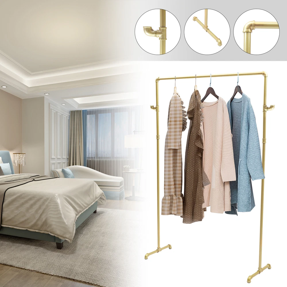 Welcome Industrial Pipe Clothing Rack with 2 Side Hooks,Commercial Heavy Duty Clothes Racks for Hanging Clothes,Vintage Standing Clothes Rack Portable,Clothing Rack Display Rack Description Clothing Rack Are You Still Looking for a Suitable Clothing Rack? Our Clothing Rack Is Made of Steel Pipe, Which Is Strong and Durable. Each Side of the Clothing Rack Has a Tubular Hook That Can Be Used to Hang Scarves, Bags, and Other Items, Making Good Use of Space. Its Surface Is Treated with Nano Baking Paint, Which Can Be Well Waterproof and Rust-proof. Its Minimalist Design Will Be Your Ideal Choice. Key Features Adjustable Footbed : the Footbeds Are Flat and Smooth in Shape to Prevent Scratching the Floor. at the Same Time, It Can Be Adjusted in Height to Keep Stability on Uneven Floors. High-quality Material: the Clothing Rack Is Made of High-quality Steel Pipe with Thickened Pipe Walls. the Steel Material Is Strong and Not Easily Deformed, Making the Service Life Longer. Versatile Style : the Clothing Rack's Simple Shape Design and Smooth Lines Highlight the Geometric Beauty, so It Can Be Perfectly Integrated into a Variety of Decoration Styles. Easy Installation: the Simple Structure and Industrial Design Make the Clothing Rack Easy for You to Install. You Can Set It up Yourself Even Without the Guidance of a User Manual. Avoiding Creases: the Clothing Rack Provides More Space for All Your Seasonal Clothes. It Effectively Prevents Creases in Your Clothes After Folding and Saves You Time from Ironing. Space Saving: the Clothing Rack Has a 42.5-Inch-long Hanging Rod, so You Can Hang a Lot of Clothes. It Is a Good Space Saver for You. Easy to Clean: the Surface of the Clothing Rack Is Treated with Nano Baking Paint, Making the Surface Flat and Smooth, so It Is Easy to Clean. You Just Need to Wipe It with a Wet Rag. Excellent After-sales Service: We Aim to Provide Quality Products and Services. If You Have Any Problems, Please Feel Free to Contact Us. We Will Reply and Solve the Problem for You As Soon As Possible. Details Nano Baking Paint: the Surface of the Rack Is Treated with Nano Baking Paint, Which Is Waterproof and Wear-resistant. at the Same Time, It Prevents the Steel Rod from Rusting and Prolongs the Use Time. External Hooks : the Hanging Rod with a Tubular Hook at Each End Can Be Used to Hang Hats, Scarves, Bags, and Other Things, Increasing the Capacity of the Rack. Application Our Products Can Be Widely Used in Homes, Clothing Stores, Hotels, Garment Factories, and Other Places Where There Is a Need to Hang Clothes. Specification Material: Steel Color: Golden Packing Size: 49*20*10cm/49.2*3.9*14.5inch Product Size: 108*40*160cm/42.5*15.8*63inch Net Weight: 5kg/11lbs Gross Weight: 5.5kg/12.1lbs Package Included 1* Hanging Rod 4* Support Rods 2* Base Rods 2* Rods with Hook 4* Footbeds Notes Please Allow the Slight Color Difference Caused by the Shooting Light and 1-3cm Error Due to Manual Measurement, and Make Sure You Do Not Mind Before Ordering. Payment Delivery details Terms of sales About us Contact us Payment We accept ebay payment 。 Fees such as import duties, taxes are not included in the item price or shipping costs. These charges are the buyer's responsibility. Delivery details Shipping: 2-9 working days to: USA Terms of sales We maintain high standards of excellence and strive for hundred percent customer satisfaction. Feedback is very important to us. We hope that you contact us immediately before you give neutral or negative feedback, so that we can address your concerns. It is impossible to address issues if we do not know about them! About us Your satis faction is our ultimate goal. We work hard to earn your trust and future business. Our certified technicians have tested each item before shipping. The unit comes with 1 year limited warranty on all manufacturing defects. a) If you receive a defective item, you may return it or ask for a discount. Please contact us within 14 days after you receive the package. b) What you returned must be intact and in its original packaging as re? u. Customer is responsible for shipping costs of the returned item. c) We will cover the cost of shipping back t with the shipping rate indicated in the registration page. We will send you a new unit or refund the full payment you paid. Thank you. Contact us Business Hour Business Hour: Monday To Friday: 8:30 AM to 5:00 PM (Beijing China time) Due to time zones, our reply to your questions may not be immediately. But within above working time, we will reply your email within 24 hours. If it's non-workdays, please kindly be patient and wait till Monday. Please contact us with ebay message. Please feel free to contact us if you have any questions. Monday To Friday: 8:30 AM to 5:00 PM (Beijing China time) Due to time zones, our reply to your questions may not be immediately. But within above working time, we will reply your email within 24 hours. If it's non-workdays, please kindly be patient and wait till Monday. Please contact us with ebay message. Please feel free to contact us if you have any questions. Brand Unbranded MPN Does Not Apply Merchandise Type Clothing Type Single Rail Material Steel Product Size 108*40*160cm/42.5*15.8*63inch UPC Does not apply