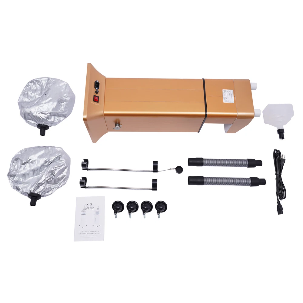 Nano Hair Steamer Anion Hair Color Processor Machine w/ Double Hair Steamer Arm ❤Welcome❤ Multifunctional Hair Dyeing Machine, Nano Hair Steamer, Hair Oil Machine Description In this fast-paced era, give your hair a deep pampering journey like never before! It's not just a product, it's a magic wand to add to your daily care rituals and give your hair a natural shine. This innovative Nano hair steamer offers a rejuvenating encounter, infusing your locks with revitalizing hydration, not merely restoring but elevating their vitality. Take action now so that beauty is no longer a dream, but a reality within your reach. Your hair deserves this exclusive pampering! Key Features Durable and Sturdy: The product is mainly made of high-quality aluminum alloy with a painting process, which is anti-tarnish, wear-resistant, corrosion-resistant, and can ensure an extended service life. Care for Your Hair: It has a powerful power of 650W and uses Nano technology to utilize nano water molecules to penetrate the hair, fully replenish and moisturize the hair, promote penetration and repair your damaged hair. Multi-functional Use: It has oil baking/hair coloring/conditioning/shirt/styling/cold mist/ozone multiple functions, free fog control, timing function(0-30min), the spray can be between 104-158°F (cold mist can shrink the pores, hot mist can open the pores), so you can enjoy the ultimate in hair care! Ozone Properties: The ozone treatment is a scalp and hair care program that converts oxygen into ozone and diffuses it into the hair shaft to strengthen the hair follicles. This hair treatment addresses common hair problems including hair loss, hair breakage, dandruff and premature graying of the hair while also increasing hair volume. Thoughtful Design: Its 2 tubes can be retracted within 13-34.65 inches at will into and out for your convenience, while the four tangle-proof hair universal wheels at the bottom are trapezoidal in design, which is stable and safe, allowing you to move around at will. Safety First: It has an automatic shut-off function without water and an anti-dry burn function. In addition, high-quality power switch and fuse holder can prevent power leakage, and the power failure protection fuse ensures your safety when using it. Easy Operation: The smart operating panel features clear instructions, sensitive control buttons, and LCD display, so you can get started quickly and save time. Ideal Gift: With its practicality and powerful functions, you can give it to your friends and family as a Christmas or Thanksgiving gift! Customer Service: We aim to provide quality products and services. If you have problems, please feel free to contact us. We will reply and solve the problem for you as soon as possible. Details Drainage Outlet: The good quality drainage outlet can facilitate you to drain the waste water, which in turn protects the service life of the product. External Water Reservoir: The removable, 28.15oz water reservoir eliminates the need for frequent refilling and allows for easy cleaning, while the semi-clear design allows you to keep an eye on the water level at all times. Steam Caps: Two waterproof steam caps are available for your convenience without the need to purchase additional ones! Durable Handle: It is very comfortable to use and easy to push. Application It can be used at home, barber stores, beauty salons, etc. It is used for preventing dandruff, itchy scalp, hair loss, over secretion of oil, quickly repairing damaged hair cells, nourishing hair, improve the quality of hair problems such as dryness, dull yellow color, hair-splitting, brittle and roughness. It is suitable for low-temperature perm, hair dyeing with steam, and hair care with steam. Specification Color: Gold/White Material: Aluminum Alloy Process: Painting Assembly Required: Yes Style: Modern Shape: Rectangle Mount Type: Freestanding Screen Type: LCD Plug Type: US Standard Power Source: Corded Electric Voltage: 110V, 50Hz Power: 650W Time Setting: 0-30min Temperature Range: 40-70°C/104-158°F Water Reservoir Capacity: 800ml/28.15oz Power Cord Length: 1.8m/5.91ft Each Tube Telescopic Length: 33-88cm/13-34.65in Gross Weight: 12kg/26.46lbs Net Weight: 11kg/24.25lbs Package Size: 83*34*35cm/32.68*13.39*13.78in Main Machine Size: 30*30*82cm/11.81*11.81*32.28in Package Included 1* Nano Hair Steamer 2* Steam Caps 4* Universal Wheels 1* Power Line 1* English Instruction Notes Pay attention to your hands and feet away from the drain to prevent burns. Please add purified water before starting the machine. Otherwise the water dirt will block the instrument inlet. Before leaving the factory, the machine needs to be filled with water to test the fogging condition of the machine, so maybe some water remains inside the bottle. Please read the English instructions carefully before use and pay particular attention to the safety tips contained therein. Please allow the slight color difference caused by the shooting light and 1-3cm error due to manual measurement, and make sure you do not mind before ordering. *Description* Welcome to Autocomponents999 Thank you for your support! If you have any questions,please feel free to contact us!!! ↓↓↓↓ HAVE A NICE DAY ! Payment Delivery details Terms of sales About us Contact us Payment We accept ebay payment 。 Fees such as import duties, taxes are not included in the item price or shipping costs. These charges are the buyer's responsibility. Delivery details Shipping: 2-9 working days to: USA Terms of sales We maintain high standards of excellence and strive for hundred percent customer satisfaction. Feedback is very important to us. We hope that you contact us immediately before you give neutral or negative feedback, so that we can address your concerns. It is impossible to address issues if we do not know about them! About us Your satis faction is our ultimate goal. We work hard to earn your trust and future business. Our certified technicians have tested each ite