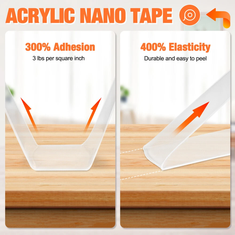 Nano Super Tape Double Sided Heavy Duty Reusable Adhesive Stick Transparent Tape Visit Our Shop H ot Sale Pro motion Contact Us Description STRONG ADHESIVE Our nano glue allows easy and damage-free attachment of items to the wall.Made of leading acrylic gel material, this clear adhesive double-sided tape demonstrates strong durability and adhesion, three times that of conventional tape. And it is very easy to remove and leave no residue. MULTI FUNCTIONAL DOUBLE-SIDED TAPE The double-sided transparent tape can be used for car phone holders, posters, picture frames, pen holders, wall stickers, hooks, small tools, sticky pads, phone cases, patches, decorative items, and wall decor. Additionally, this tape is washable and reusable. SAFE NANO GEL MATERIAL: This double sided mounting tape is non-toxic, environmentally friendly and recyclable. transparent, no residue, removable. STRONG STICKY: Unlike ordinary tapes, this washable adhesive tape is used the most advanced nano-technology, made of the latest acrylic gel material, ensuring high viscosity, durability, elasticity, and residue-free performance. It adheres perfectly to smooth, clean, non-porous surfaces like glass, windows, doors, wardrobes, table tops, bathroom tiles, and marble. Not suitable for powder wall, plaster wall, rough wall, or paint wall to prevent wall damage. WASHABLE & REUSABLE: The reusable transparent two sided tape can be easily cleaned with water when dirty, but avoid using other wipes or detergents. Simply wash and dry the tape to restore its stickiness for repeated use, with the caveat that the number of uses may vary depending on viscosity. EASY TO USE: Easily cut to any size and length you want! It can be stretched, bending and folded out of shape to meet your needs. The transparent double-sided tape is very easy to remove and leave no residue. MULTI-FUNCTION AND NO MORE MESSY: Say goodbye to disorderly small items with this removable mounting tape. It is versatile and can be used in various settings such as home, office, wardrobe, and bathroom. Use it to easily fix frames, photos, festival decorations, posters, carpets, power sockets, wall stickers, hooks, small tools, pads, phone cases, patches, , wall decor and more, lightweight items. Payment We accept PayPal Only! Import duties, value added taxes and any other charges are not included, Buyers are responsible for import duties, custom fees and taxes, if any. Please check with your country's custom office to determine the additional costs impose on the item prior to buying. We are absolutely NOT responsible for any import tax or Customs duty. Shipping 1)All items will be shipped to your ebay address .Please update your latest address when you check out,and please make sure to provide us with correct,precise and detailed shipping address. 2)All items will be shipped in 1-2 business days (excluding Sat,Sun & Holiday) after payment received and cleared. For the long-time holiday, we'll post the info on our store and reply you automatically via emails. 3)If you don't receive items over 30 business days,please make sure to contact us before leaving any neutral or negative feedbacks.We'll try our best to help you solve the problem. Return Your satisfaction is our main concern, so we try ensure your order is perfect in every way. However, things can occasionally go wrong and you wish return any item bought from us within 30 days of receipt for a refund or have the item exchanged. This can be for any of the following reasons - You need to exchange for a different item. You simply don't like your item. The wrong item was sent. The order was faulty or damaged. In the result of you wanting to return an item, you have 30 days to do so, in your return please include reason and action you would like to be taken. The buyer is responsible for the return postage, and if an exchange is required then extra postage cost will need to be paid. In the rare case of a faulty item or wrong item received then please get in contact with our customer service team and we will get the problem resolved as quickly as we can.