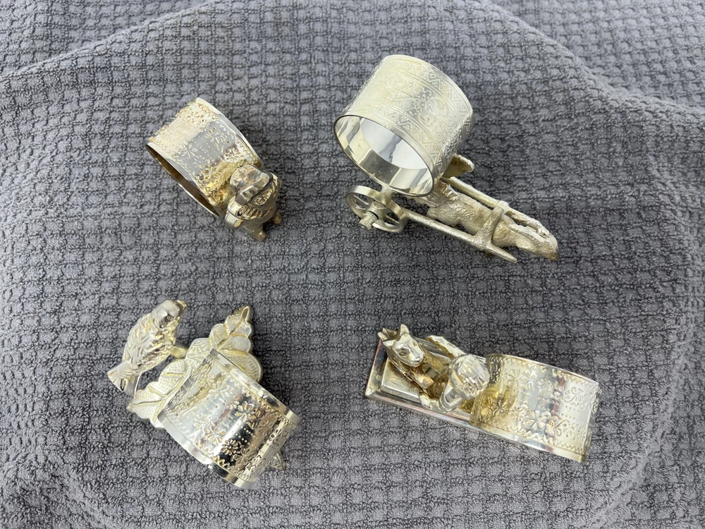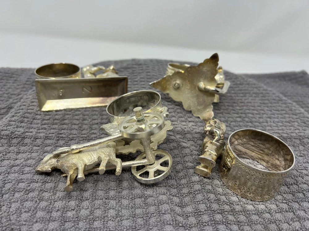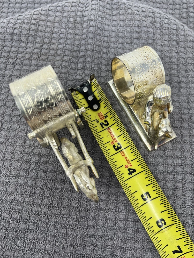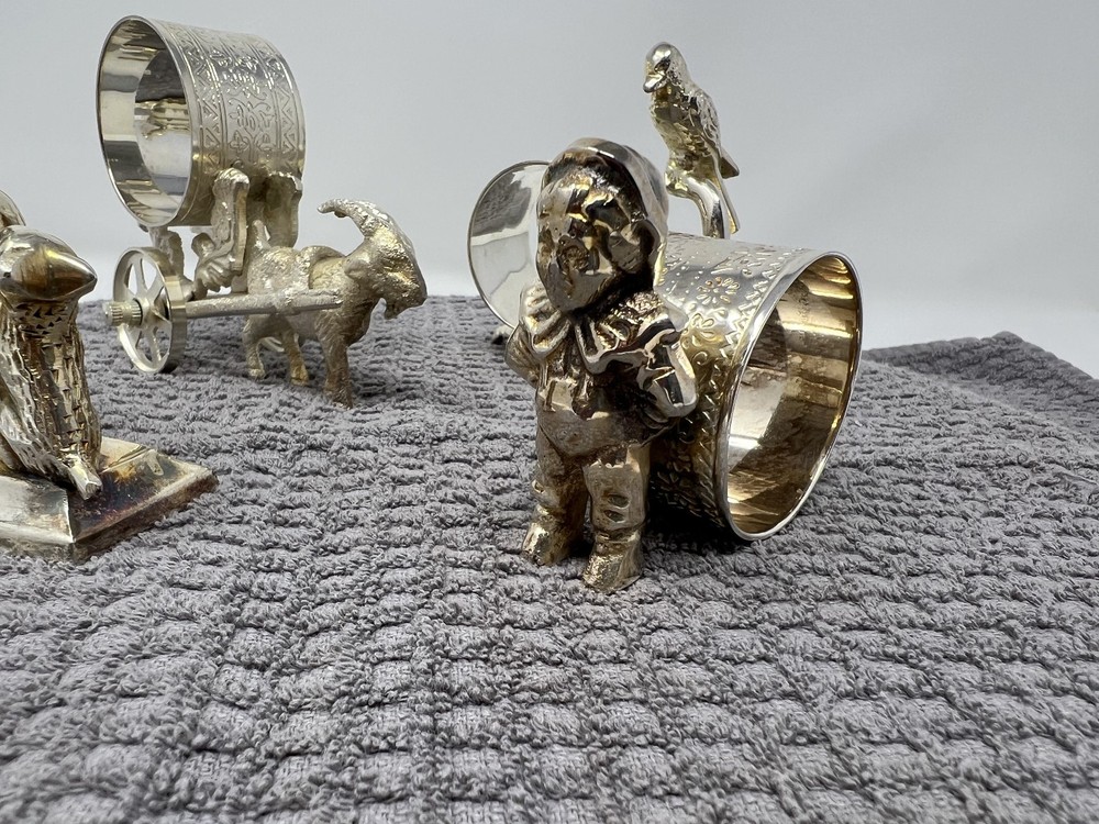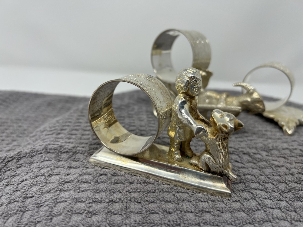 Victorian Style Silver Plate Standing Figural Cherub Napkin Rings - Set of 4 In gently used condition. Please see pictures for details. These are reproductions of the antique versions. The reproductions were first released around December 2000. These are silver plate over brass.