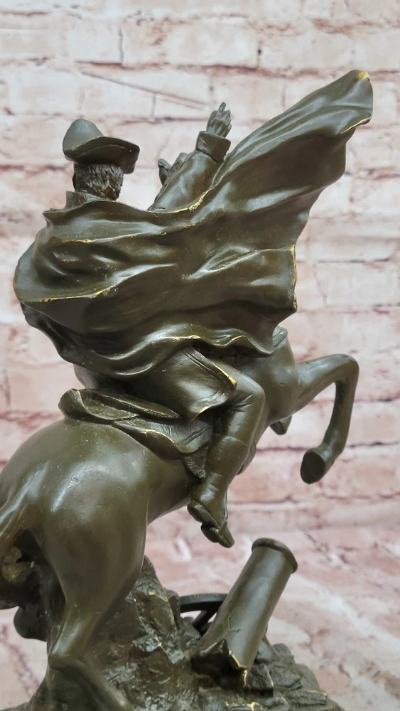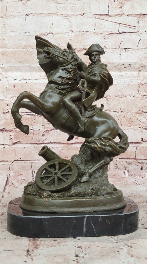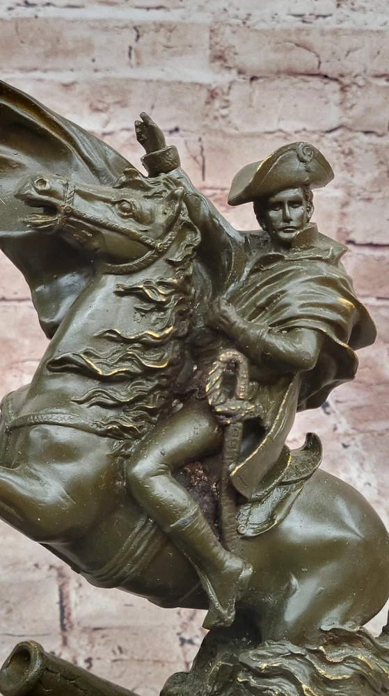 Detailed Napoleon Bonaparte Bronze Crossing Alps Horse Sculpture French Gift NR Detailed Napoleon Bonaparte Bronze Crossing Alps Horse Sculpture French Gift NR Condition : This sculpture is in perfect condition. Bronze Dimensions with Marble Base: Height 12" X Width 8" Marble Dimensions:8" X 6" Height without base:11" Weight:11 LBS Inventory:28GTS0228182 This pure bronze statue of Napoleon Bonaparte Crossing the Alps, crafted by French artist Claude, is a striking tribute to one of history's most iconic military leaders. Inspired by Jacques-Louis David’s famous painting, the sculpture captures Napoleon in a heroic pose, mounted on a rearing horse as he leads his troops through the treacherous Alpine terrain. The movement, expression, and power in both the horse and rider are rendered with exquisite realism. Handmade using the lost wax method, this sculpture features a rich brown patina that enhances the depth and texture of every detail—from the flow of Napoleon’s cloak to the musculature of the horse. This traditional casting technique allows for exceptional precision and a timeless finish, making it a true collector's piece. The statue is mounted on a solid black marble base, offering both contrast and elegance. A compelling addition to any history enthusiast’s collection, this sculpture embodies the ambition, leadership, and drama that defined Napoleon’s legend. Whether displayed in a home office, library, or gallery, it stands as a powerful symbol of strategic genius and enduring legacy. NAPOLEON BONAPARTE CROSSING THE ALPS PURE BRONZE STATUE SCULPTURE BY FREANCH ARTIST CLAUDE Video will open in a new window Using the eBay App? Paste link into a browser window: [isdntekvideo] Shipping Terms : Most of our items are shipped via USPS (United States Postal Service) mail or UPS. Most orders are shipped within 24-48 hours of purchase. Please be aware that not all items are available for USPS shipping due to size and weight. We do ship to Hawaii, Alaska, Canada, Puerto Rico, APO/AE, and U.S. Virgin Islands, however, an additional charge may be required. Please contact us before making any purchases in these areas. For Non-USA customers, you may be responsible for all duty, tax, brokerage fees that may be due upon delivery (shipping costs cover freight charges only). We also ship internationally. Please refer to the "Shipping and Handling" chart for the rates for each area. Payment : We accept just about any form of payment. PayPal, Master Card, Visa or American Express credit cards. Money orders, cashiers checks, and even personal or business checks. For governmental institutions, we will also accept a purchase order. Please understand that for personal or business checks we have to wait for the check to clear (usually 7 days) before shipping. Condition : New Detailed Hand Crafted Hot Cast Bronze Satisfaction Guaranteed. This is Stock Photo, Slight Color Variation!! Listing and template services provided by inkFrog