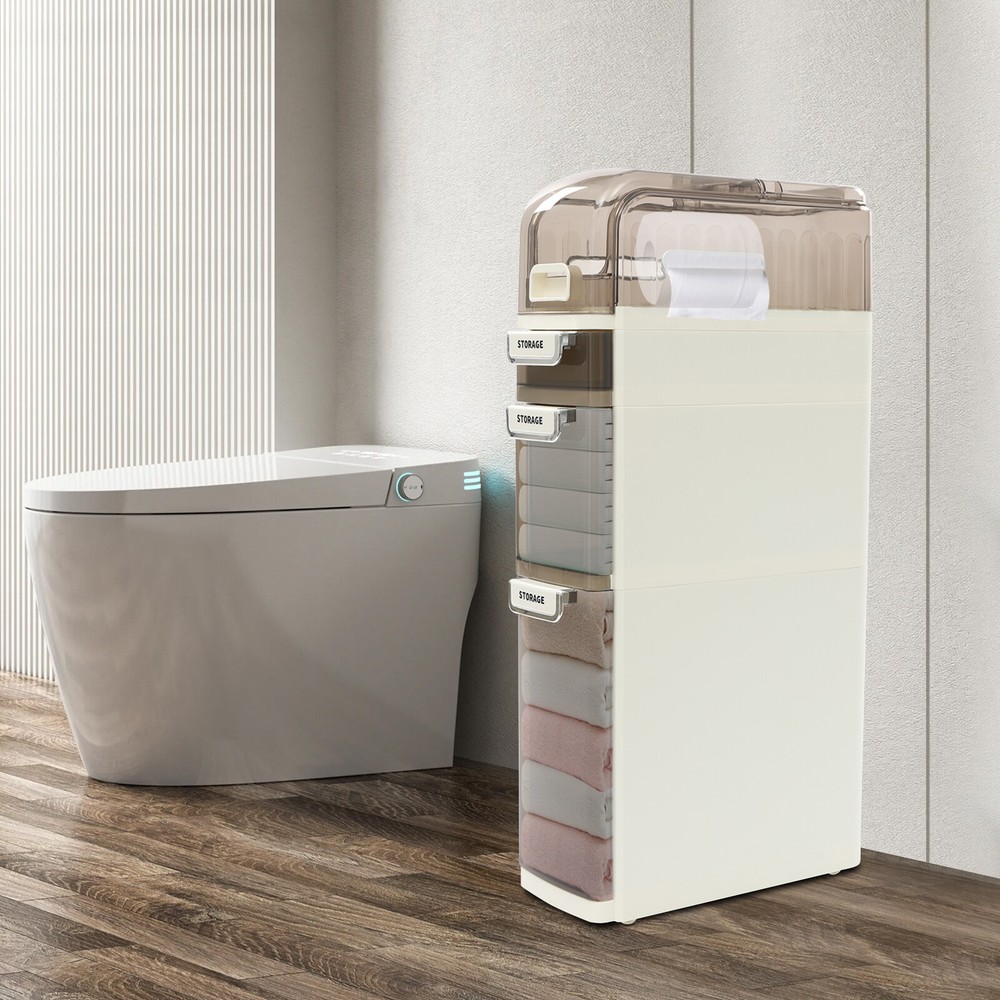 Narrow Bathroom Storage,Slim Bathroom Storage Cabinet,Mobile Storage Organizer Description This 4-tier storage cart is both stylish and practical. It is designed to make full use of space and achieves fine classification storage to make your life and work more orderly. The modern style shows an exquisite charm, expressing a refined sense of fashion. This product has a slim body with a large capacity , making your life more organized and tidy, get it now! Key Features Premium Material: The product is made of PET and PP, which has high strength, good corrosion resistance, and rust-resistant , water-proof, dust-proof, and moisture-proof performance, and can be used for the long term. Modern Appearance: The pleasing white color, rectangular structure, and smooth lines add beauty and exquisite elements to your room. It plays a unique decorative role while using, bringing an exquisite charm into your home. Storage Assistant: The top groove and 3 drawers of different sizes are convenient for you to store different sizes and types of things. In addition, the top storage box allows you to store toilet paper, etc., which has paper outlets on both sides. Excellent Load-bearing Capacity: Thanks to its thickened material and rectangular structure, this product has excellent load-bearing capa city, so you can use it with confidence. Easy to Move: Four silent wheels make the whole product easily moved from one place to another while better protecting the floor from scratches, greatly enhancing efficiency and convenience. Space-saving: Its slim body and 4-tier structure make full use of vertical space, making it ideal for bathrooms or other tight spaces, maximizing space utilization. Ready to Use: It does not need assembly, so you can directly use it after receiving and cleaning it, greatly saving time and effort. Convenient to Use: The ergonomic handle on each drawer makes it easier to pull out and close the drawer, which not only provides convenience but also improves the aesthetics of the entire product. Easy to Clean: With a smooth surface and detachable drawers, it is very easy to clean with a damp cloth (not included). Ideal Gift: With a delicate outlook and practical storage function, it is a wonderful housewarming, wedding, or festival gift for your families, friends, or colleagues. Details Visible Drawers: The semi-clear drawer allows you to see what is inside, making it easy to find and replenish daily necessities promptly. Smooth Edges: They no t only increase the beauty of the product but also improve the safety of use. Application It can be placed in bathrooms, kitchens, bedrooms, living rooms, and other places to store towels, cleaning products, laundry detergent, dishes, watches, jewelry, ties, remote controls, books, cosmetics, skincare products, essential oils, paper towels, toiletries, spices, snacks, beverages, and more. Specifications Style: Modern Color: White Material: PET, PP Mount Type: Freestanding Assembly Required: No Number of Drawers: 3 Number of Wheels: 4 Number of Tiers: 4 Product Size: 18*41*78cm/ 7.09 * 16.14 * 30.71 inch Package Size: 83*45*22.5cm/ 32.68 * 17.72 * 8.86 inch Gross Weight: 4.9kg/ 10.8 lbs Net Weight: 4.66kg/ 10.27 lbs Package Included 1* 4-tier Storage Cart Notes Please check the size carefully before ordering the product. Please note that this product does not include other items shown in the picture. Please allow the slight color difference caused by the shooting light and 1-3cm error due to manual measurement, and make sure you do not mind before you order. Payment Delivery details Terms of sales About us Contact us Payment We accept ebay payment 。 Fees such as import duties, taxes are not included in the item price or shipping costs. These charges are the buyer's responsibility. Delivery details Shipping: 2-9 working days to: USA Terms of sales We maintain high standards of excellence and strive for hundred percent customer satisfaction. Feedback is very important to us. We hope that you contact us immediately before you give neutral or negative feedback, so that we can address your concerns. It is impossible to address issues if we do not know about them! About us Your satis faction is our ultimate goal. We work hard to earn your trust and future business. Our certified technicians have tested each item before shipping. The unit comes with 1 year limited warranty on all manufacturing defects. a) If you receive a defective item, you may return it or ask for a discount. Please contact us within 14 days after you receive the package. b) What you returned must be intact and in its original packaging as re? u. Customer is responsible for shipping costs of the returned item. c) We will cover the cost of shipping back t with the shipping rate indicated in the registration page. We will send you a new unit or refund the full payment you paid. Thank you. Contact us Business Hour Business Hour: Monday To Friday: 8:30 AM to 5:00 PM (Beijing China time) Due to time zones, our reply to your questions may not be immediately. But within above working time, we will reply your email within 24 hours. If it's non-workdays, please kindly be patient and wait till Monday. Please contact us with ebay message. Please feel free to contact us if you have any questions. Monday To Friday: 8:30 AM to 5:00 PM (Beijing China time) Due to time zones, our reply to your questions may not be immediately. But within above working time, we will reply your email within 24 hours. If it's non-workdays, please kindly be patient and wait till Monday. Please contact us with ebay message. Please feel free to contact us if you have any questions. On Mar 2, 2025 at 21:15:34 PST, seller added the following information: