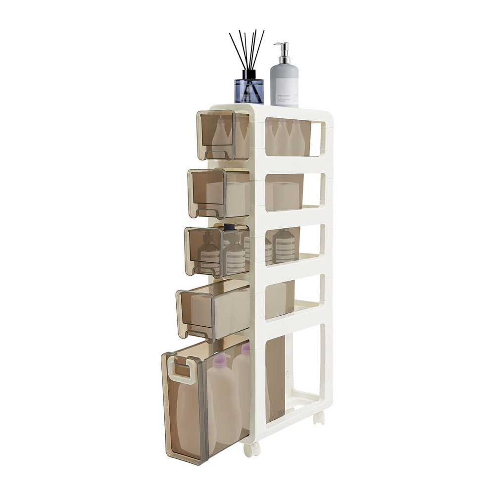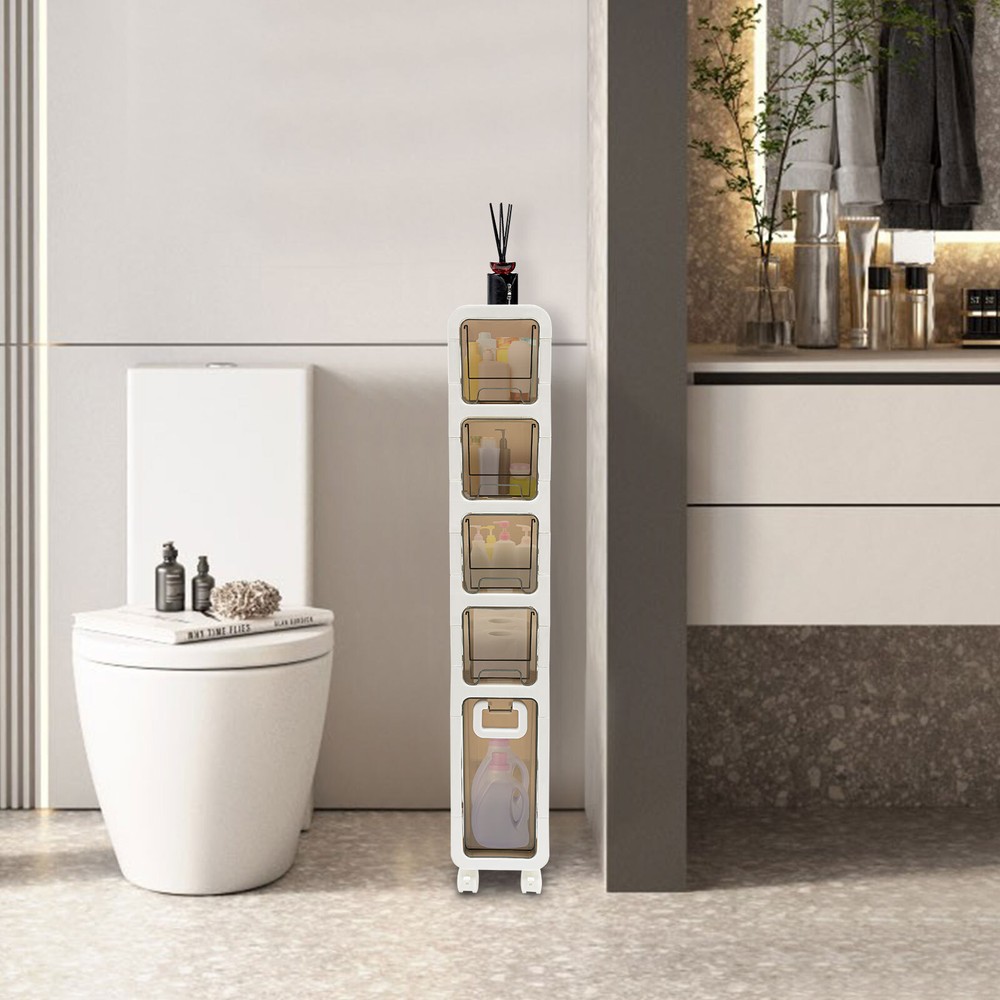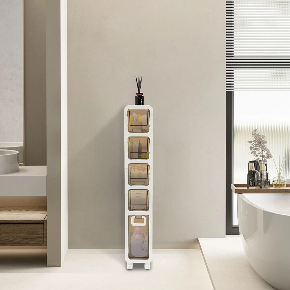 Narrow Slim Storage Cabinet, Bathroom Floor Cabinet Organizer, Home Decor Welcom to yiyahahaho Bathroom Floor Cabinet, Narrow Slim Storage Cabinet, Bathroom Organizer Description In daily life, a neat and organized space can make us feel relaxed and happy. Let's take a look at this bathroom floor cabinet , which is made of high-class PP , sturdy and durable. Large capacity and 5-tier storage space can meet your daily needs. The simple structure and smooth surface make it easy for you to clean. It is such a practical piece of home furnishing, bring it home soon! Key Features Sturdy and Durable: The premium PP makes this product wear-resistant , waterproof , moisture-proof, and less prone to deformation, ensuring long-term use in a wet environment. Storage Assistant: The 5-tier storage space and the elevate d tier spacing maximize the vertical space, and allow cosmetics, books, shower supplies, and seasoning bottles(all are not included) to be organized in a neat and orderly way to say goodbye to messy countertops. In addition, the top with non-slip stripes can hold items such as your alarm clock and potted plants (not included). Strong Load-bearing Capacity: High-class material and sturdy construction allow it to withstand heavy loads without deforming or falling off, meeting your daily needs. Thoughtful Design: The semi-clear drawer design allows you to easily find the it ems you need. The small wheels at the bottom of the drawer make the pulling process smoother and less prone to jamming, saving time and effort when retrieving items. Stylish Appearance: With a white and brown appearance, simple structure, and smooth lines, it shows a modern style and can decorate your bathroom well. Easy to Move: 4 universal wheels are convenient for you to move this product freely in your living room, bedroom, kitchen, bathroom, and so on. The brakes are also convenient for you to fix and prevent sliding. Space-saving: Its small footprint ( 16.7*6.7 inches) and tall and slim design make full use of vertical space, making it fit into relatively narrow spaces in the bathroom. Easy to Clean: Thanks to the smooth surface and simple structure, you can wipe the dirt from it with a wet cloth (not included). Ideal Gift: This product is stylish and high-class and can be used as an ideal housewarming, birthday, and holiday gift for parents, friends, and loved ones. Protective Package: To prevent damage to the product due to bumps in transit, we place foam to protect the product as much as possible. Details 4 Recessed Handles and 1 Large Handle: They can be great for helping you open or close 5 drawers. Built-in Buckles: The drawers are designed with built-in buckles, avoiding pulling them completely out of the storage cabinet. This design keeps the contents of the drawer safe. Raised Bottom: It allows the bottom of the product not to directly touch the ground, avoiding long-term moisture and inconvenient cleaning. Round Corners: It adopts an arc design, which can effectively care for your skin compared with the traditional square corners. Application This product is suitable for kitchens, bathrooms, bedrooms, laundry rooms, living rooms, dressing rooms, cloakrooms, hotels, and dormitories, and can be used to store food, spices, tableware, skincare products, books, magazines, newspapers , remote controls, toys, pet products, toiletries, cleaning products, laundry detergent, etc. Specifications Material: PP Color: White, Brown Style: Modern Shape: Rectangular Assembly Required: Yes Room Type: Bathroom Mounting Type: Freestanding Number of Tiers: 5 Number of Universal Wheels: 4(2 with Brakes) Gross Weight: 5.5kg/12.13lbs Net Weight: 5.23kg/11.53lbs Product Size: 42.5*17*99.5cm/16.7*6.7*39.2in Package Size: 99.5*16*46cm/39.17*6.3*18.11in Package Included 1* Bathroom Floor Cabinet 4* Universal Wheels Notes Please note that this product does not include cosmetics, condiments, etc. Please check the size carefully before ordering. Please allow the slight color difference caused by the shooting light and 1-3cm error due to manual measurement, and make sure you do not mind before you order. Payment Delivery details Terms of sales About us Contact us Payment We accept ebay payment 。 Fees such as import duties, taxes are not included in the item price or shipping costs. These charges are the buyer's responsibility. Delivery details Shipping: 2-9 working days to: USA Terms of sales We maintain high standards of excellence and strive for hundred percent customer satisfaction. Feedback is very important to us. We hope that you contact us immediately before you give neutral or negative feedback, so that we can address your concerns. It is impossible to address issues if we do not know about them! About us Your satis faction is our ultimate goal. We work hard to earn your trust and future business. Our certified technicians have tested each item before shipping. The unit comes with 1 year limited warranty on all manufacturing defects. a) If you receive a defective item, you may return it or ask for a discount. Please contact us within 14 days after you receive the package. b) What you returned must be intact and in its original packaging as re? u. Customer is responsible for shipping costs of the returned item. c) We will cover the cost of shipping back t with the shipping rate indicated in the registration page. We will send you a new unit or refund the full payment you paid. Thank you. Contact us Business Hour Business Hour: Monday To Friday: 8:30 AM to 5:00 PM (Beijing China time) Due to time zones, our reply to your questions may not be immediately. But within above working time, we will reply your email within 24 hours. If it's non-workdays, please kindly be patient and wait till Monday. Please contact us with ebay message. Please feel free to contact us if you have any questions. Monday To Friday: 8:30 AM to 5:00 PM (Beijing China time) Due to time zones, our reply to your questions may not be immediately. But within abo