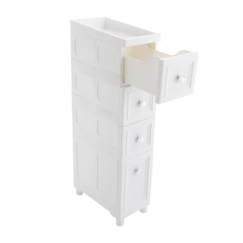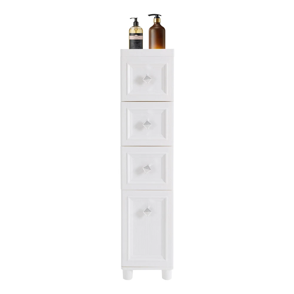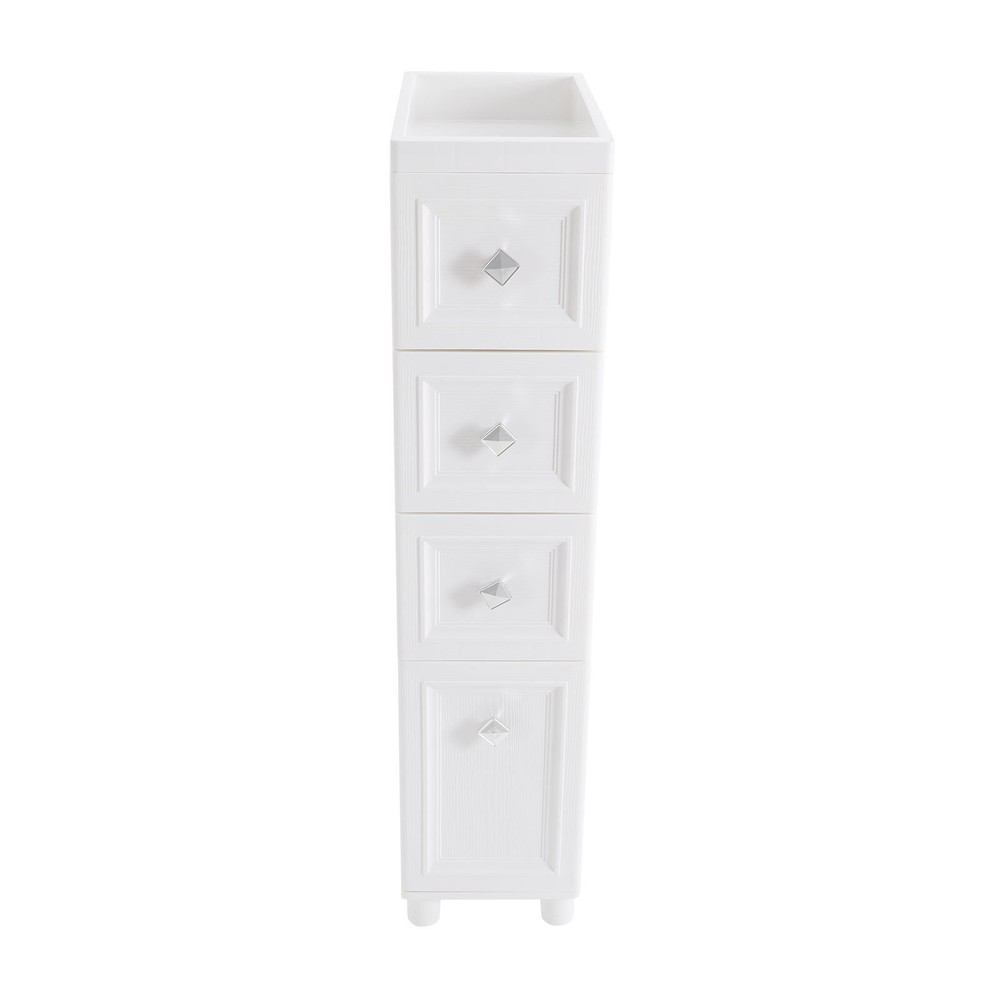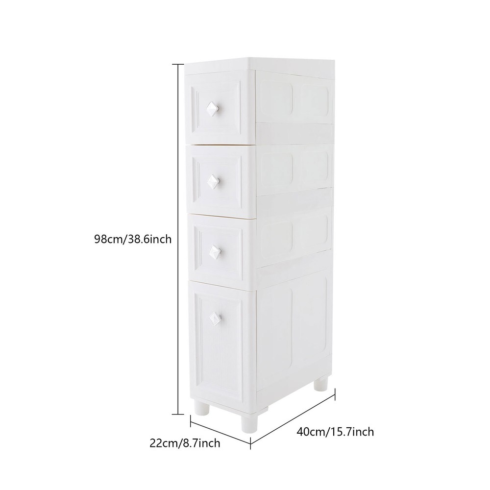 Specification Color: White Material: PP Style: Modern Shape: Rectangular Number of Tiers: 4 Assembly Required: Yes Installation Type: Freestanding Product Care Instructions: Wipe with a Soft Cloth Each Tier Load Capacity: About 2-3.5kg/4.4-7.7lbs Product Size: 22*40*98cm/8.7*15.7*38.6in Package Size: 44.5*41.5*35.5cm/17.52*16.34*13.98in Gross Weight: 5.7kg/12.57 lbs Net Weight: 5kg/11 lbs Package Included 1* Bathroom Floor Cabinet Narrow Slim Storage Cabinet, Bathroom Organizer Bathroom Floor Storage Cabinet Key Features Build to Last: The high-quality PP with high durability, hardness, and wear resistance , makes this product adapt to humid environments such as kitchens and bathrooms. Life Storage Assistant: The 4 drawers and the top groove allow you to categorize cosmetics, toilet paper, toothpaste, toothbrushes, face masks, curling irons, towels, tall bottles of shampoo, and other items, thus bringing you a neat environment. Thoughtful Design: The drawers with an anti-detachment design form an enclosed space for items stored inside to prevent dust and moisture and ensure cleanness and dryness. Plus, the convenient handles allow for easy and smooth opening and closing of the drawers. Good Load Capacity: With its rectangular construction and high-quality materials, it holds approximately 4.4-7.7 lbs per tier, so you can rest assured that you'll be able to store daily items in it. Minimalist Style: The white appearance combines rectangular shapes and smooth lines to create a minimalist aesthetic and reveal a strong modern charm, adding a touch of refinement to your room. Simple Cleaning: It has a simple structure and smooth surface, so when dust accumulates, you only need to clean it with a wet towel. Space-saving: With its compact footprint ( 8.7*15.7 in ches) and vertical structure, it fits into relatively narrow spaces in your bathroom or toilet. Ideal Gift: Thanks to its practicality, it will make a fine gift for family, friends, and loved ones on Christmas, Mother's Day, birthdays, and housewarmings. Buy with Confidence: We stand behind all our guests and look forward to assisting you with your purchase. It is our pleasure to answer your confusion and questions. The end of the story between us is not "we sell and you buy". Details Round Corners: Compared to traditional square corners, the burr-free rounded design is not only more comfortable to touch but also protects your skin. Raised Feet: The raised feet with small pulleys allow for smooth and labor-saving movement of this cabinet while also making it easy for you to clean the bottom floor. Application It can be placed in the bathroom, kitchen, bedroom, living room, and more to store towels, cleaning products, cosmetics, skincare products, essential oils, paper towels, toiletries, spices, snacks, beverages, etc. Specification Color: White Material: PP Style: Modern Shape: Rectangular Number of Tiers: 4 Assembly Required: Yes Installation Type: Freestanding Product Care Instructions: Wipe with a Soft Cloth Each Tier Load Capacity: About 2-3.5kg/4.4-7.7lbs Product Size: 22*40*98cm/8.7*15.7*38.6in Package Size: 44.5*41.5*35.5cm/17.52*16.34*13.98in Gross Weight: 5.7kg/12.57 lbs Net Weight: 5kg/11 lbs Package Included 1* Bathroom Floor Cabinet Notes Please check the style and size carefully before ordering. Please note that this product does not include storage items. Please allow the slight color difference caused by the shooting light and 1-3cm error due to manual measurement and make sure you do not mind before ordering. Payment Delivery details Terms of sales About us Contact us Payment We accept ebay payment 。 Fees such as import duties, taxes are not included in the item price or shipping costs. These charges are the buyer's responsibility. Delivery details Shipping: 2-9 working days to: USA Terms of sales We maintain high standards of excellence and strive for hundred percent customer satisfaction. Feedback is very important to us. We hope that you contact us immediately before you give neutral or negative feedback, so that we can address your concerns. It is impossible to address issues if we do not know about them! About us Your satis faction is our ultimate goal. We work hard to earn your trust and future business. Our certified technicians have tested each item before shipping. The unit comes with 1 year limited warranty on all manufacturing defects. a) If you receive a defective item, you may return it or ask for a discount. Please contact us within 14 days after you receive the package. b) What you returned must be intact and in its original packaging as re? u. Customer is responsible for shipping costs of the returned item. c) We will cover the cost of shipping back t with the shipping rate indicated in the registration page. We will send you a new unit or refund the full payment you paid. Thank you. Contact us Business Hour Business Hour: Monday To Friday: 8:30 AM to 5:00 PM (Beijing China time) Due to time zones, our reply to your questions may not be immediately. But within above working time, we will reply your email within 24 hours. If it's non-workdays, please kindly be patient and wait till Monday. Please contact us with ebay message. Please feel free to contact us if you have any questions. Monday To Friday: 8:30 AM to 5:00 PM (Beijing China time) Due to time zones, our reply to your questions may not be immediately. But within above working time, we will reply your email within 24 hours. If it's non-workdays, please kindly be patient and wait till Monday. Please contact us with ebay message. Please feel free to contact us if you have any questions. Brand TBvechi Please Note Shipment from local warehouse in the US Type Narrow Slim Storage Cabinet Item Height 38.6in Item Length 15.7in Item Width 8.7in Color White Material PP Style Modern Number of Tiers 4 Assembly Required Yes Installation Type Freestanding Product Care Instructions Wipe with a Soft Cloth Each Tier Load Capacity About 2-3.5kg/4.4-7.7lbs Product 