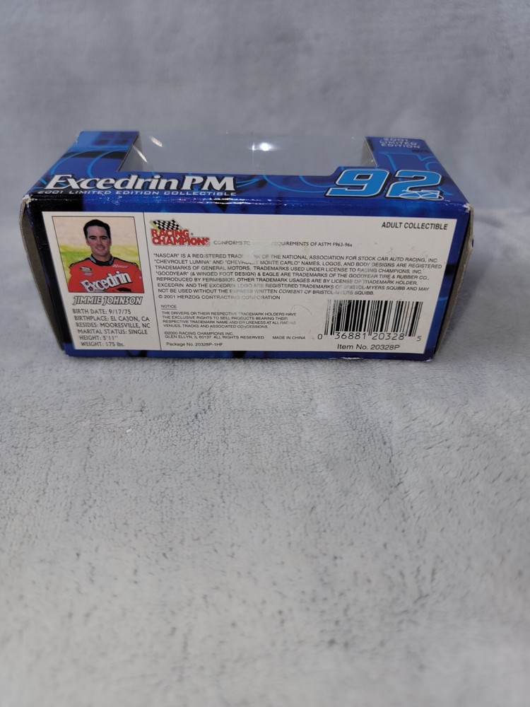 Jimmie Johnson Excedrin PM 92 2001 Limited Edition Collectible Blue The Box has some wear and tear but is still unopened Please see the photos of the exact item you will purchase Thanks for Looking Fast Shipping