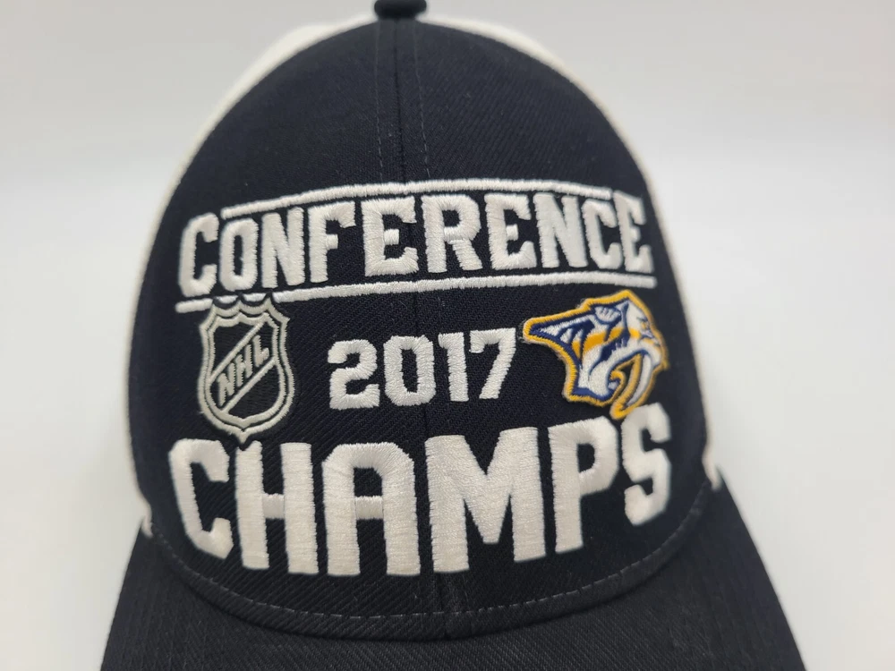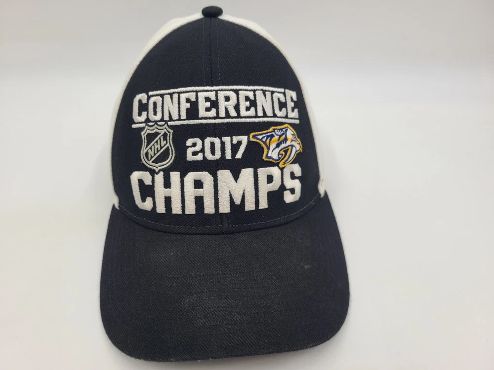 Has some stains/scuffs on the brim, back, and underneath the brim as seen in photos. Nashville Predators 2017 Conference Champions Reebok Snapback Hat Cap NHL Black. EACH ADDITIONAL HAT PURCHASED IS ONLY $1 ADDED SHIPPING!