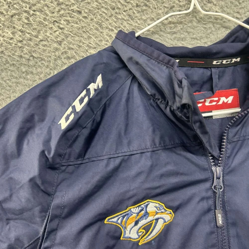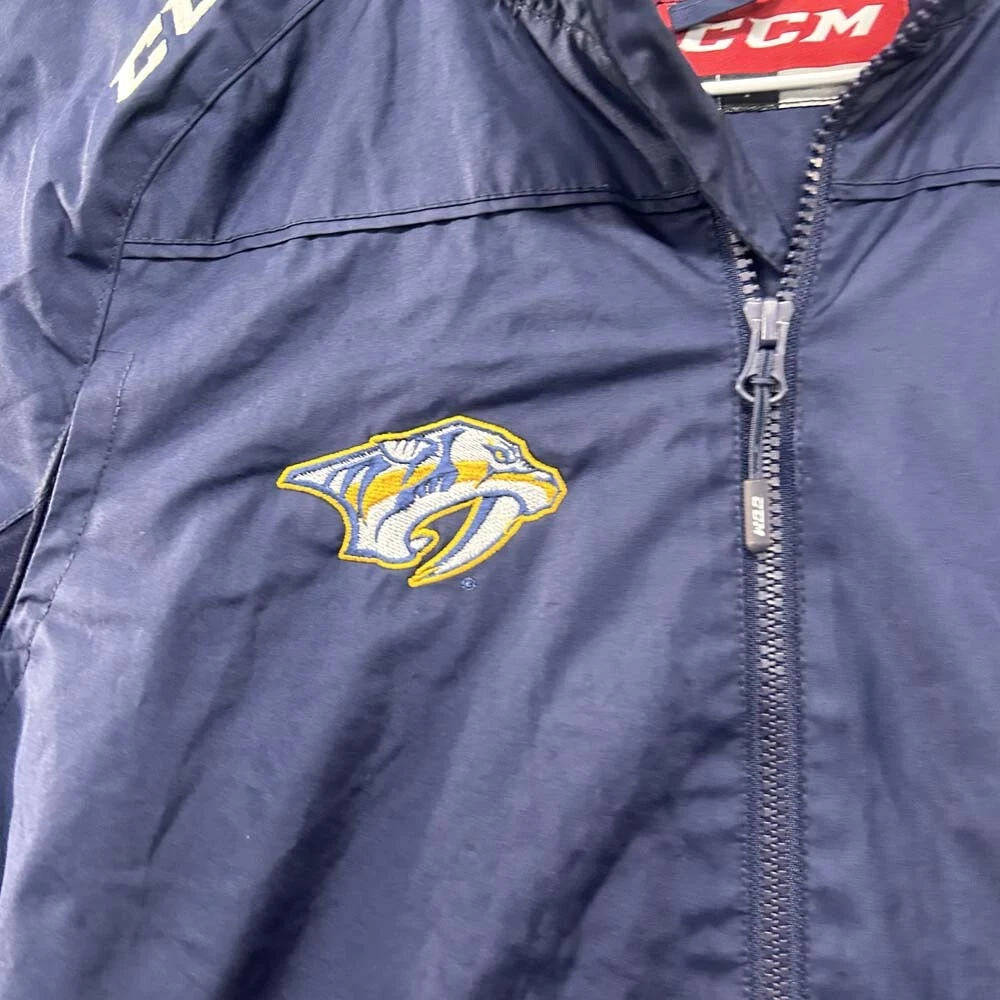 Team:Nashville PredatorsCountry/Region of Manufacture:ChinaOfficially Licensed:0Pre & Post Season:Regular SeasonProduct:JacketBrand:CCMSize:SColor:BlueGender:MenLeague:National Hockey League (NHL)