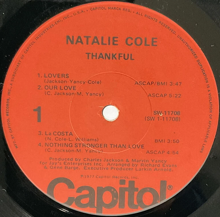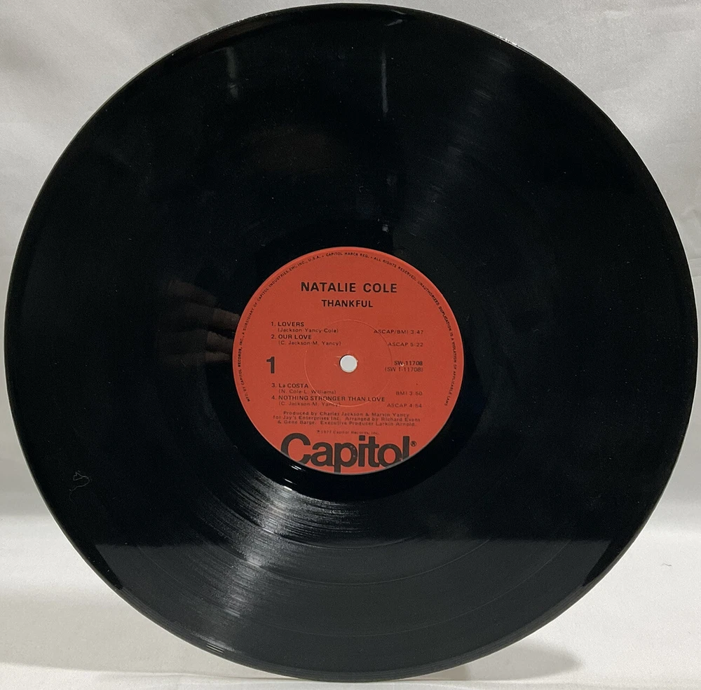Natalie Cole Thankful/ SW-11708 Condition - Used Shipping - Free Delivery Mail - USPS First Class Artist - Natalie Cole Music - Thankful Duration - LP Release Year - 1977 Record Label - Capitol Records Record Size - 12 Record Speed - 33 Language - English Manufactured - United States Format - Record Genre - Jazz, Funk, Soul Style - Soul-Jazz, Smooth Jazz, Soul Vinyl Size - 12 Vinyl Speed - 33 Original Sleeve - Yes Length - 12.3 Width - 12.3 LB - None OZ - 7.4 Flaws - Few Scratches On The Vinyl Please see all picture for full item details and Condition Do not hesitate to ask any questions you may have I will ship this for free within 24 hours after the payment is cleared Thank you for checking and looking forward doing business with you Have a great day!