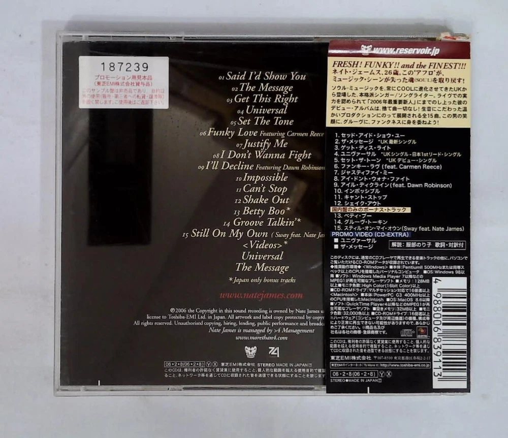 1 Said I'd Show You 2 The Message 3 Get This Right 4 Universal 5 Set The Tone 6 Funky Love 7 Justify Me 8 I Don't Wanna Fight 9 I'll Decline 10 Impossible 11 Can't Stop 12 Shake Out Japan Only Bonus Tracks 13 Betty Boo 14 Groove Talkin 15 Still On My Own Video1 Universal Video2 The Message