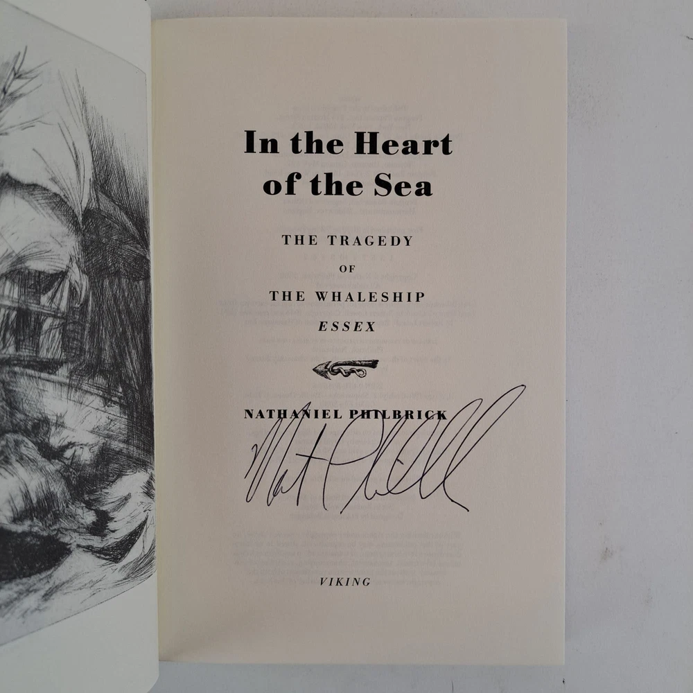 IN THE HEART OF THE SEA [Signed] Author: Philbrick, Nathaniel Title: IN THE HEART OF THE SEA [Signed] Publication: New York, New York: Viking, 2000 Edition: First Edition, First Printing Description: Octavo, 302 pages. In Very Good condition with Near Fine condition dust jacket. Dust jacket protected by mylar covering, price uncut: "$24.95" on front flap. Boards have mild shelving wear along spine head and tail. Signed flat by Nathaniel Philbrick on title page. Shelved in hallway. Seller ID: 1389535 Subject: Travel, Exploration, & Geography, US History, World History Welcome to the eBay store of Second Story Books! DC's Oldest Rare and Used Bookstore, Second Story Books operates two open shops in the Washington D.C. metropolitan area. We have an extensive internet presence and provide accredited appraisals member ASA. This listing was created by Bibliopolis.