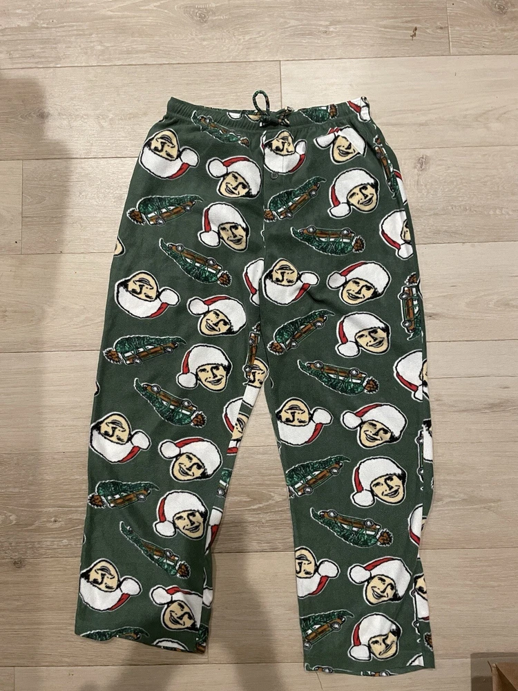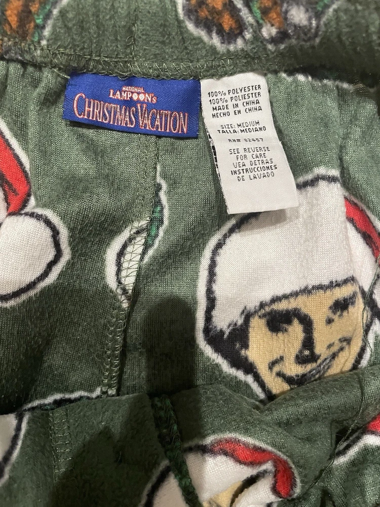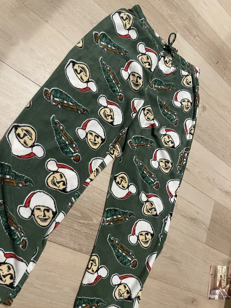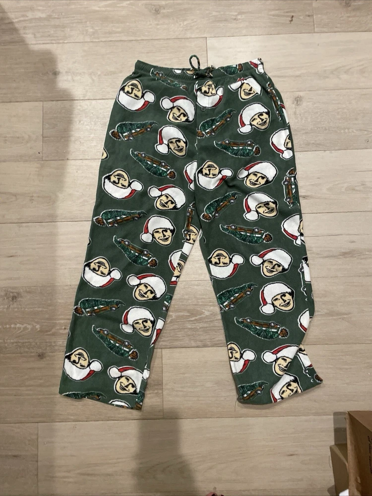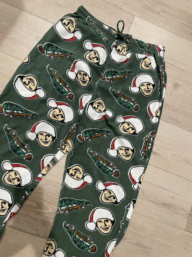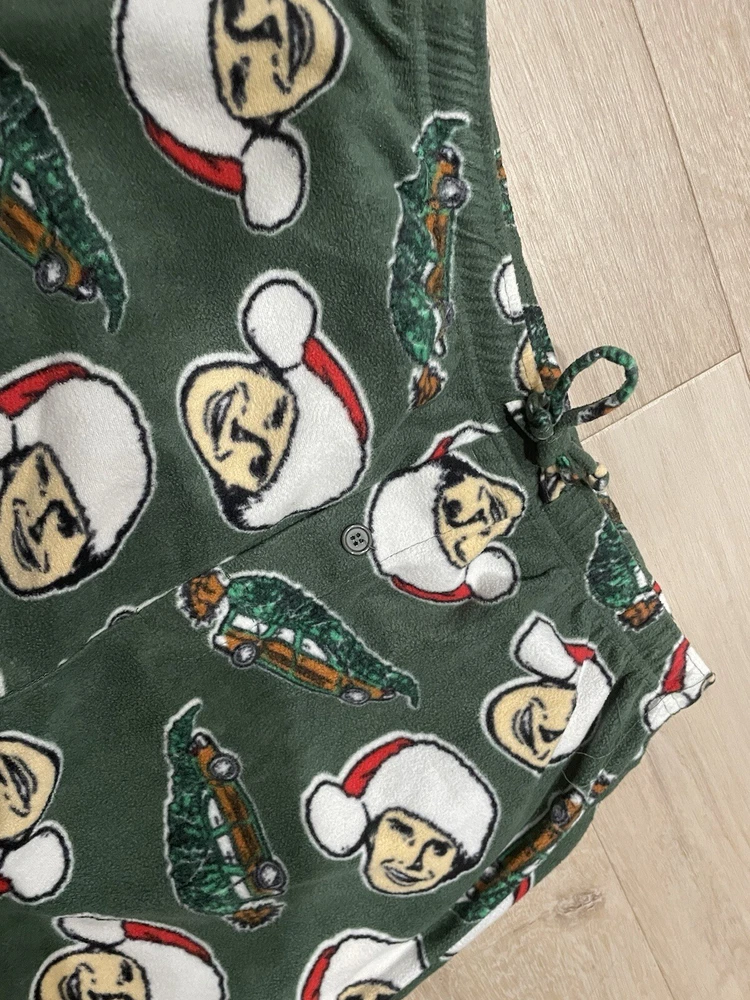 Get ready for the holiday season with these National Lampoons Christmas Vacation pajama pants! Made of 100% polyester fleece, these pants are perfect for staying cozy and comfortable during the winter, fall, and spring seasons. The drawstring closure and adjustable fit ensure a customized and secure fit, while the green graphic print and Christmas Vacation character family add a festive touch to your sleepwear collection. These pajama pants are perfect for any Clark Griswald fan and are sure to become a holiday tradition. Whether you're looking for a lightweight and comfortable option for sleepover guests or just want to add to your own collection, these National Lampoons Christmas Vacation pajama pants are a must-have.