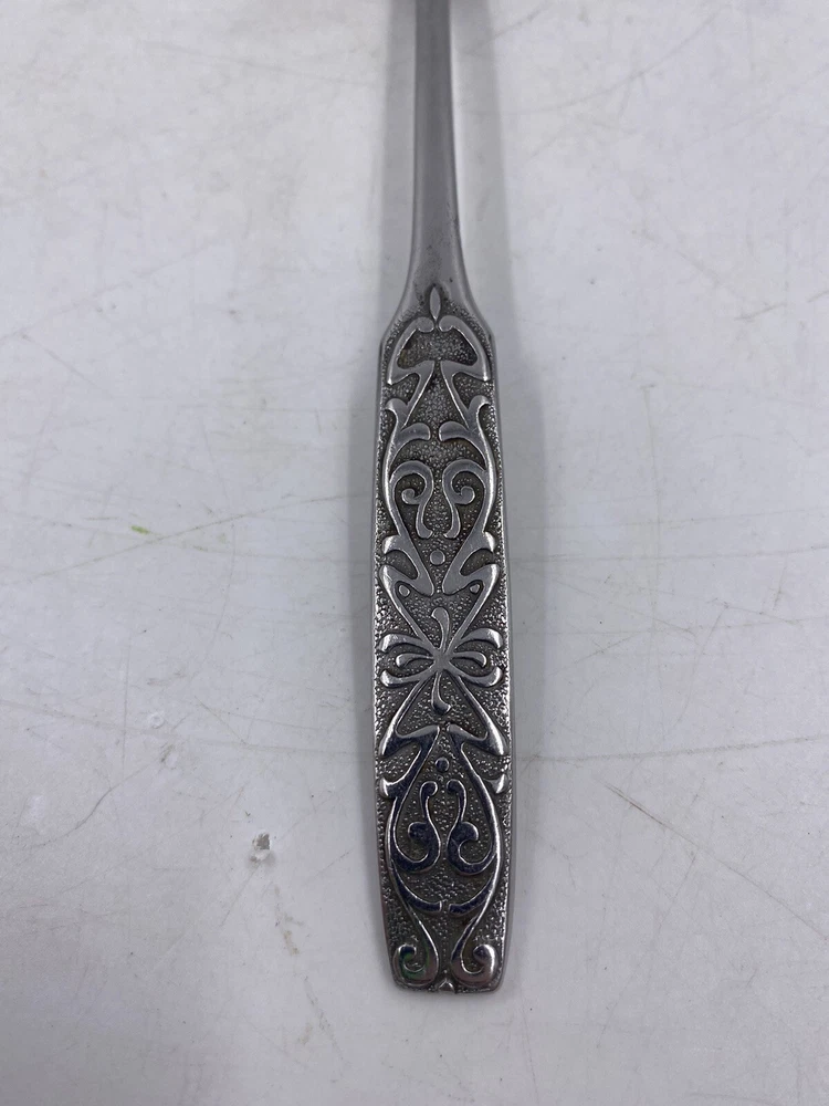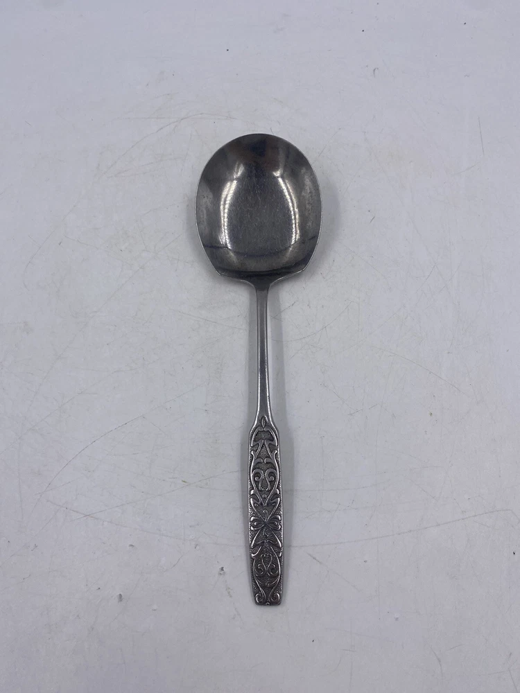 This National stainless Valinda Serving spoon made in Japan is in good overall condition. It does have normal signs of age and use. It has light scratches on front and back. You get the actual item pictured so please look at all photos and ask any questions before purchase.