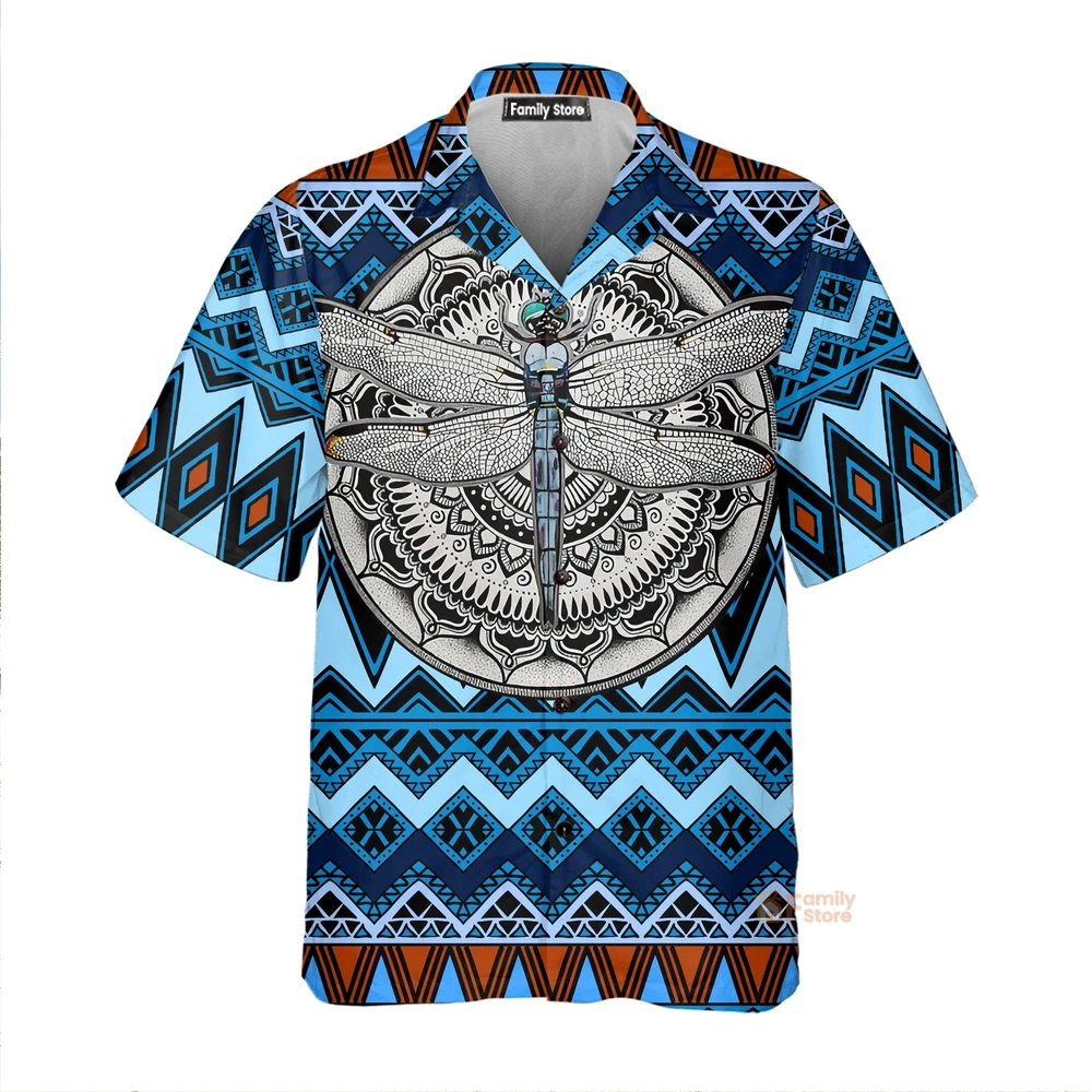 Native American Dragonfly Blue Aloha Hawaiian Shirts For Men Women