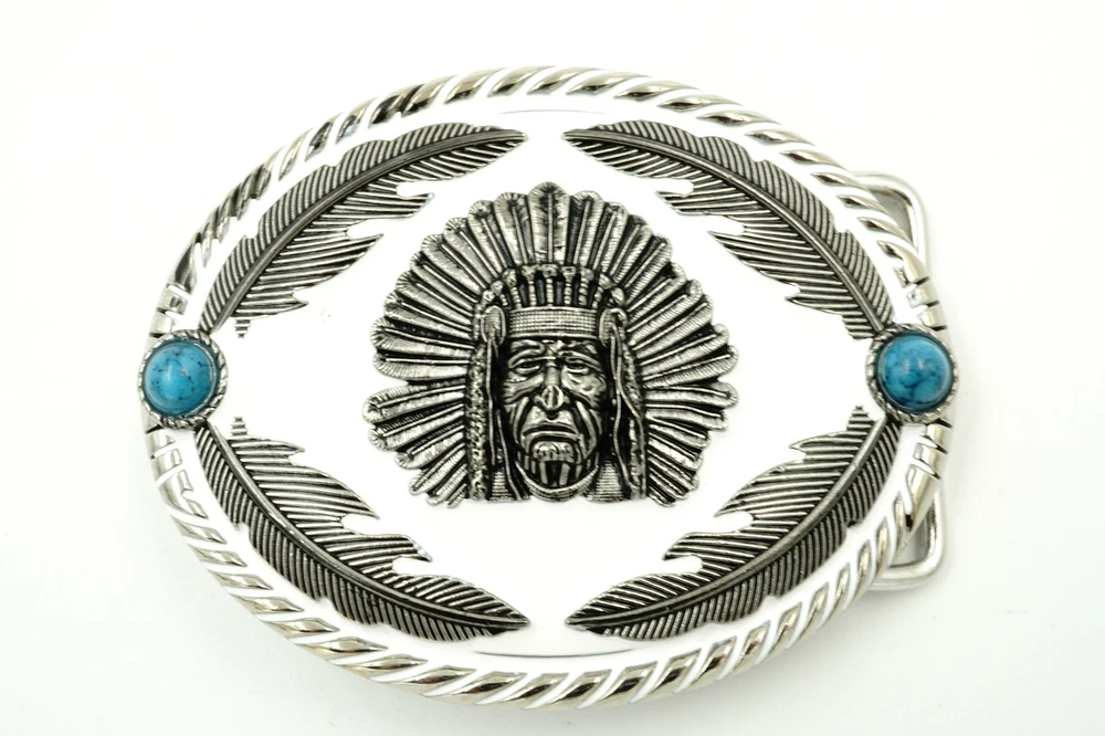 Native American Indian Chief w/ Feathers Enamel Western Metal Belt Buckle