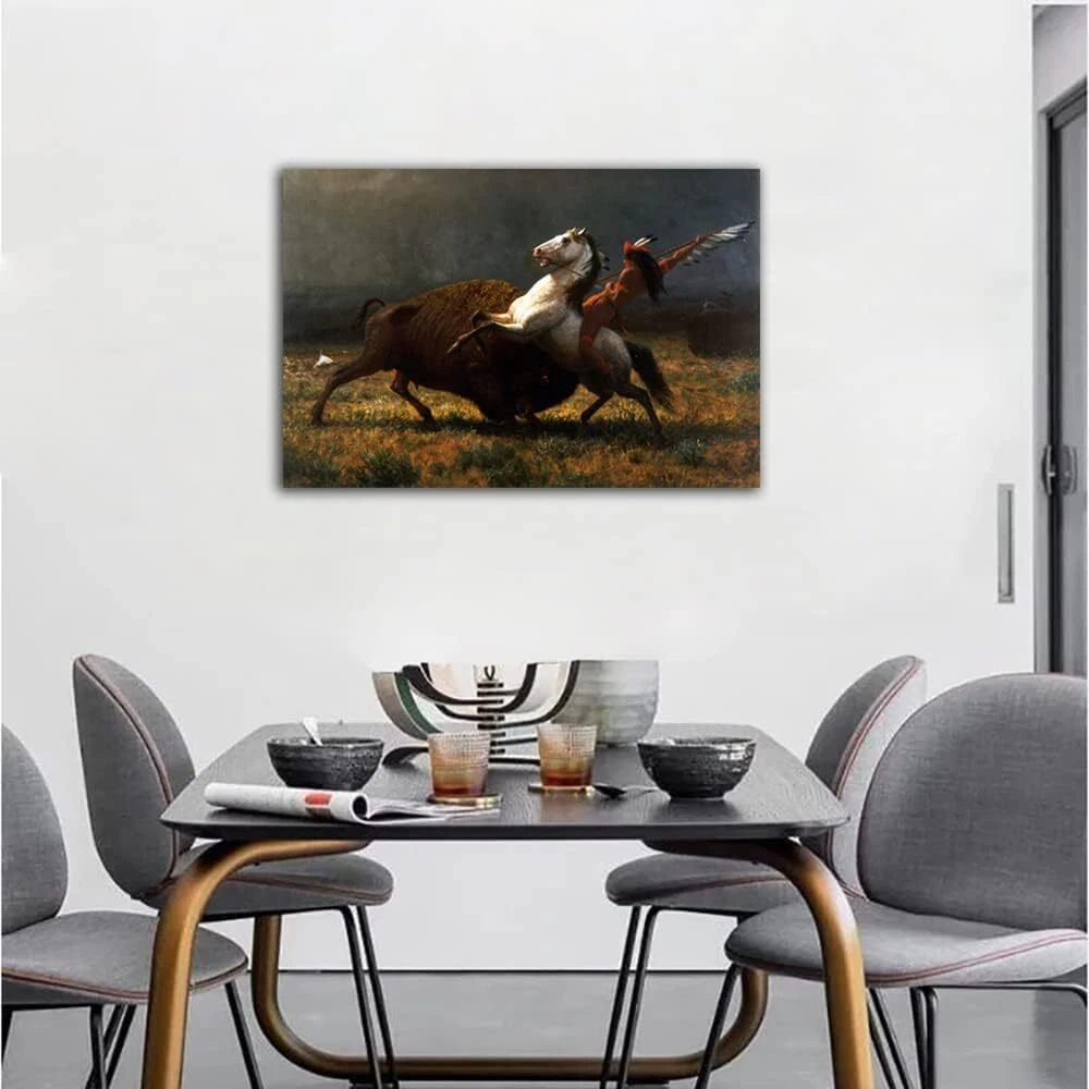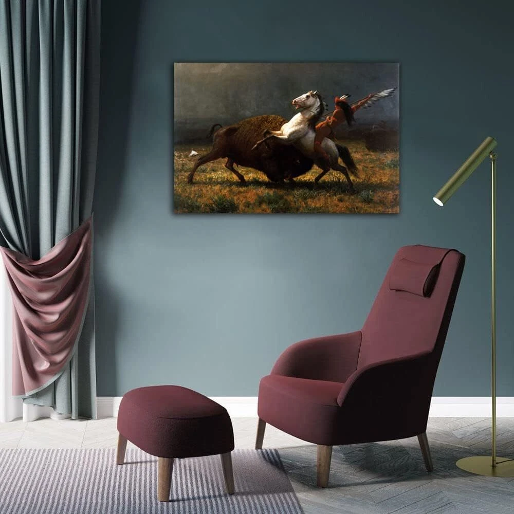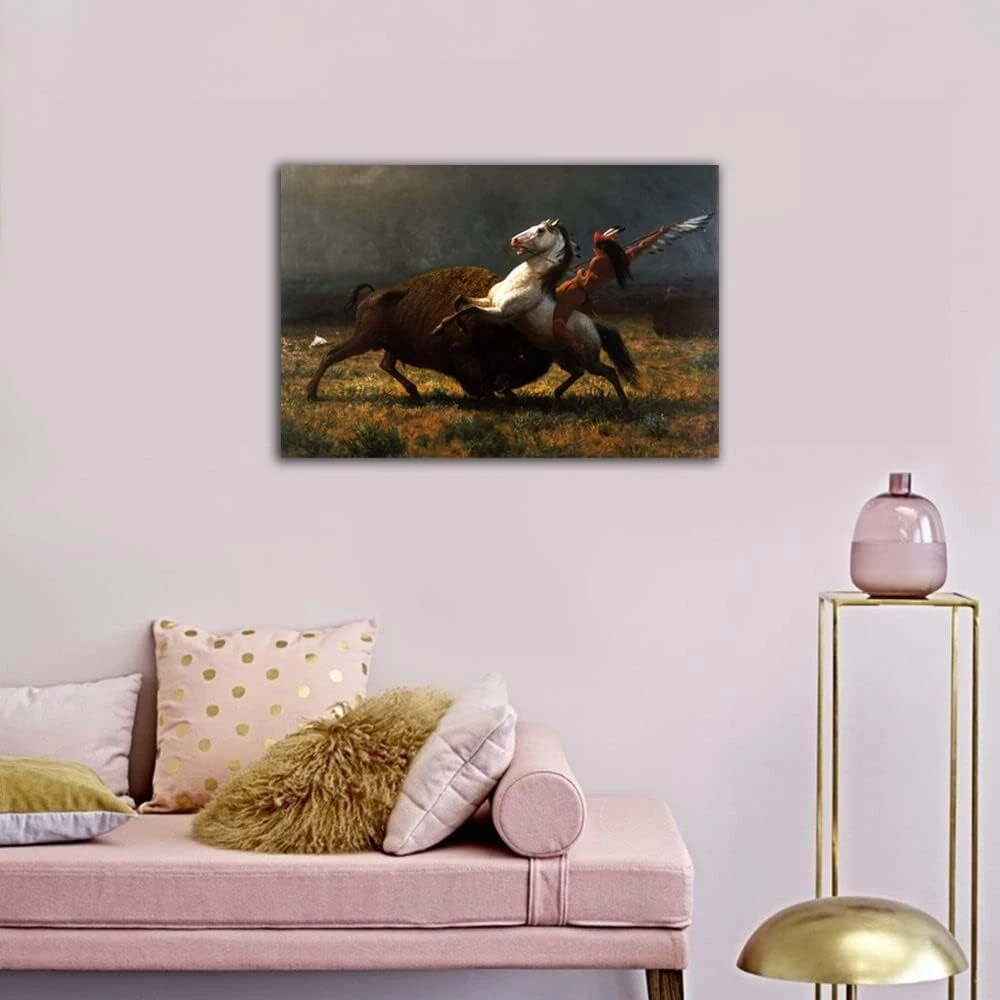 Native American Indian Horse Warrior and Buffalo Wall Art Picture Print