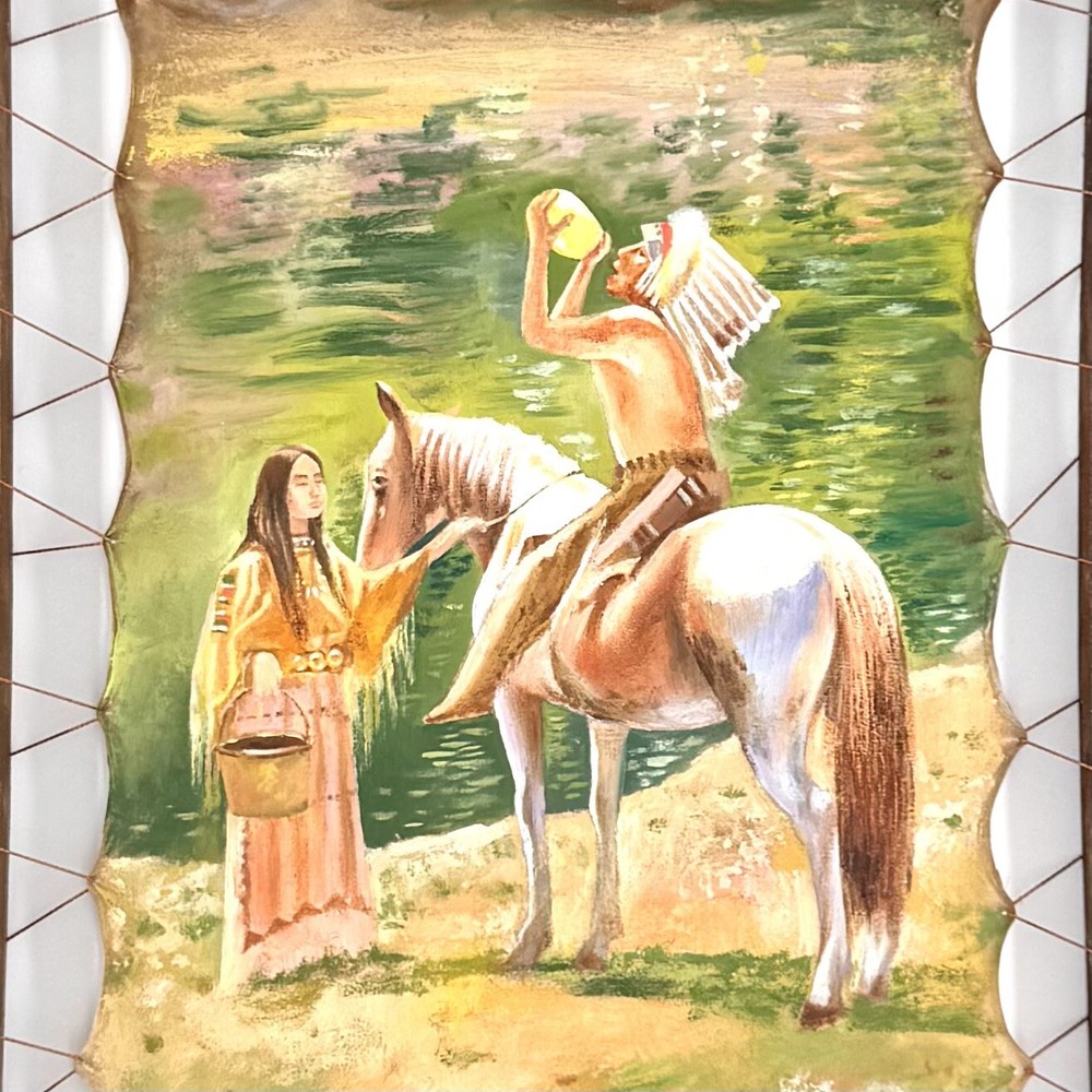Culture: American Size: Medium Region of Origin: America Theme: Art Personalize: Yes Handmade: Yes Period: Ultra Contemporary (2020 - Now) Year of Production: 2021 Time Period Produced: 2020-Now Item Width: 1 Type: Oil Painting Production Technique: Oil Painting Signed By: B.Kobilov Features: Unique Leather Surface Fine Oil Painting Signed: Yes Unit of Sale: Single Piece Style: Americana, Art Deco, Contemporary Art, Folk Art, Graffiti Art, Illustration Art, Indian, Mexican, Miniature, Native American Original/Licensed Reproduction: Original Item Height: 17.5 Subject: Figures, Men, Native America, Native American Portrait, Native Oil Painting, Native Art Artist: B.Kobilov Country/Region of Manufacture: United States Personalization Instructions: Gift Personalization Framing: Framed Title: Framed Leather Surface Oil Painting Material: Leather, Wood, Rope, Oil Item Length: 21.5