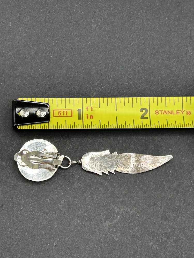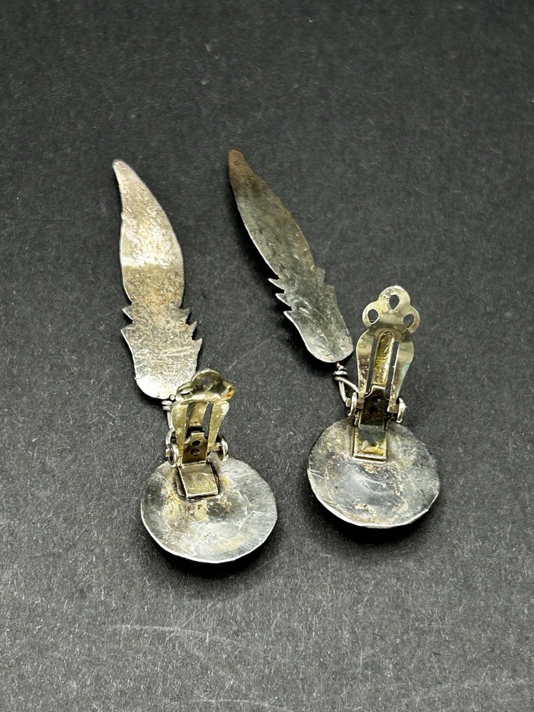 Native American Style Sterling Turquoise Feather Clip Back Earrings No marks Tested for sterling 2.25”