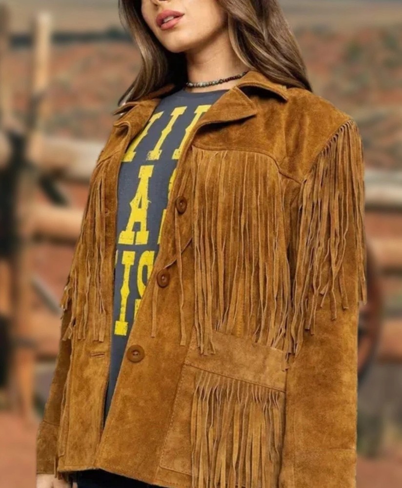 Native Americans Suede Leather Western Coat - Women's Cowgirl Jacket with Fringe