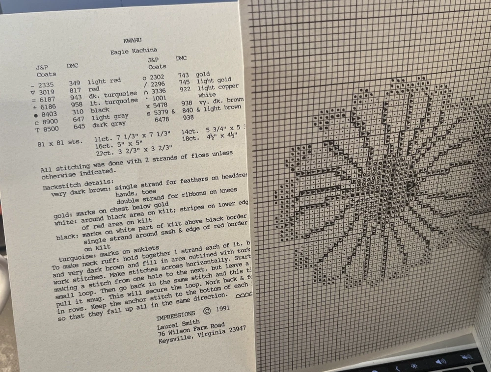 Native Cross Stitch Patterns Pair -Eagle Kachina and Sun Kachina 1991 Laurel Smith Keysville Virginia